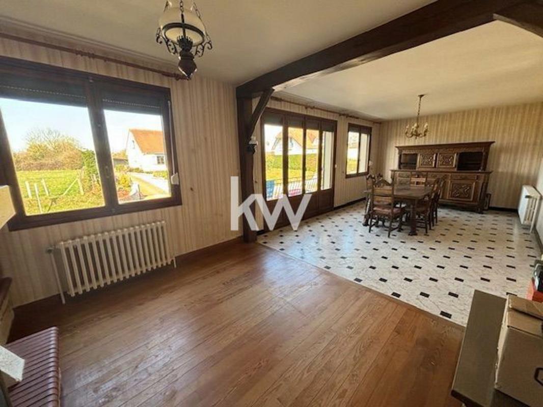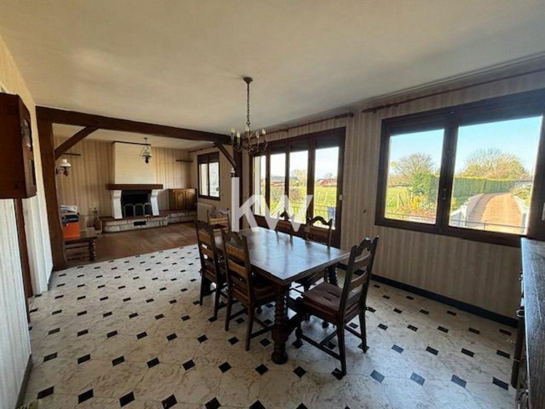 Pavillon campagne eudoise comprenant: Au rdc: Un hall d'entrée dessert une cuisine aménagée, un double séjour salon avec cheminée foyer ouvert, deux grandes chambres avec rangements, une salle d'eau et un wc indépendant. A l'étage: une belle chambre et un grenier aménageable de 48 m². Sous sol complet, grand garage indépendant, petites dépendances . Chauffage fioul, tae. Maison de qualité offrant un joli potentiel!!! terrain clos et arboré. Contactez Camille PASQUIER au 06.81.04.00.40 agent mandataire indépendant inscrite au RSAC de Dieppe 753923903 Les informations sur les risques auxquels ce bien est exposé sont disponibles sur le site Géorisques : www.georisques.gouv.fr.