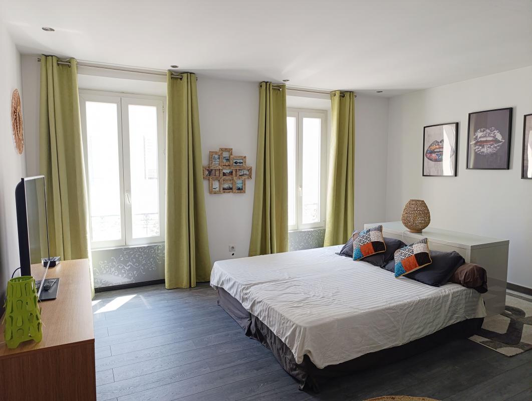 Au coeur de Cannes, magnifique appartement duplex 4 pièces d'environ 100 m² composé d'une partie basse de 80 m2 comprenant un magnifique séjour et sa cuisine US entièrement équipée, une vaste chambre avec sa salle de douche à l'italienne, une chambre actuellement configurée en bureau avec dressing attenant pouvant être utilisable en salle de bain supplémentaire.