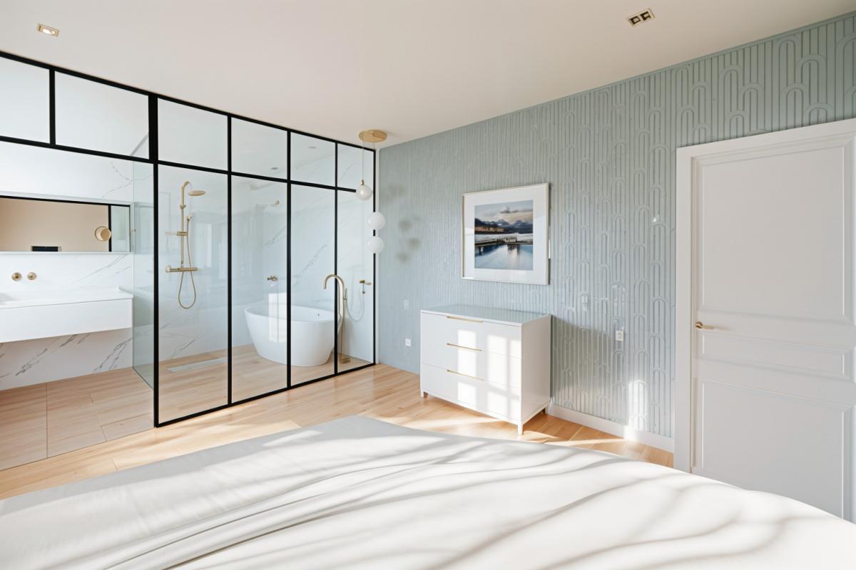 Au premier : Palier de 4,64 m2, Chambre 2 de 15,30 m2, chambre 3 de 18 m2 au sol, Chambre 4 ou Dressing ou Salle de jeux au choix de 17,74 m2 au sol