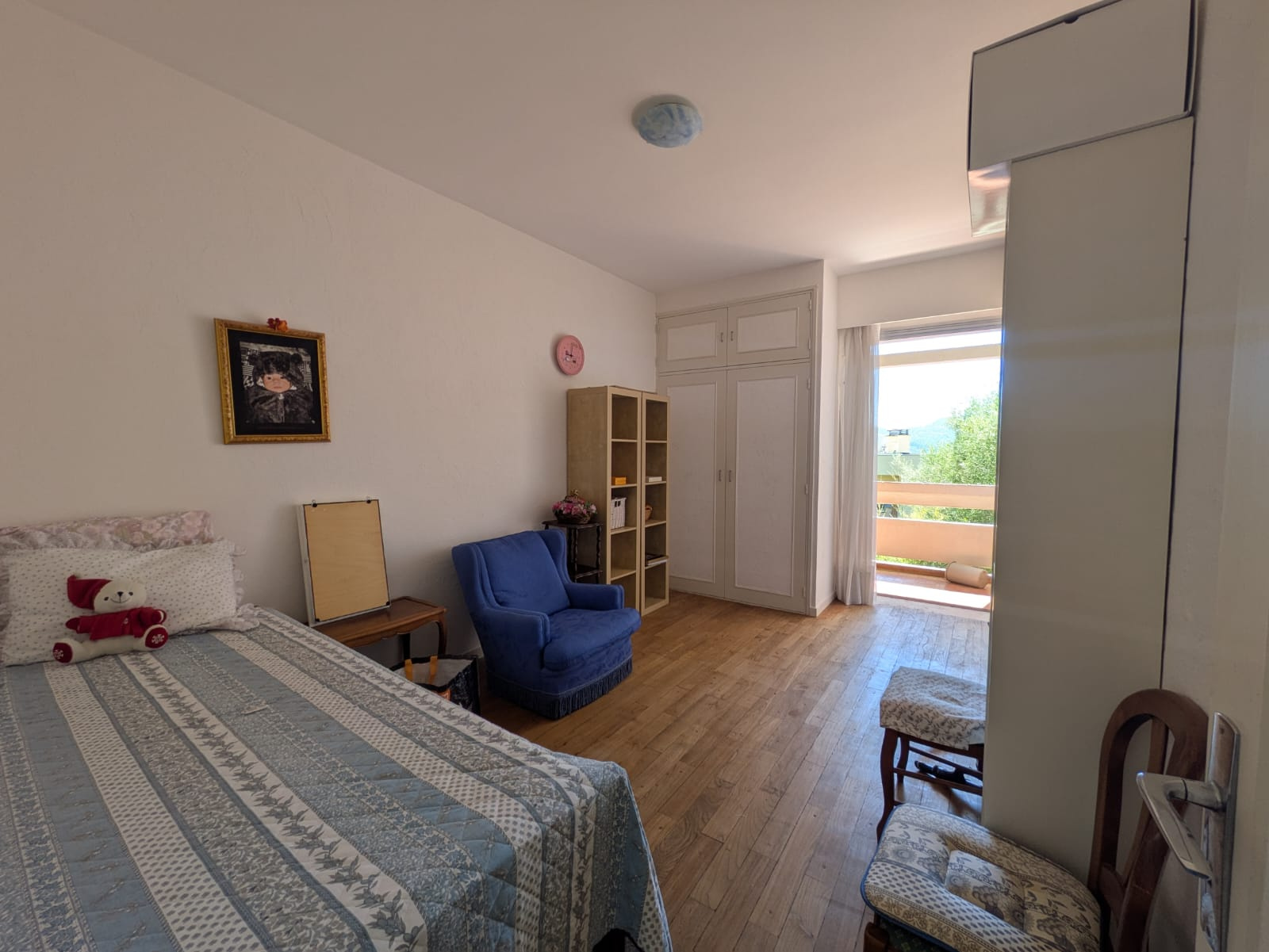 Une entrée desservant deux chambres avec balcon,