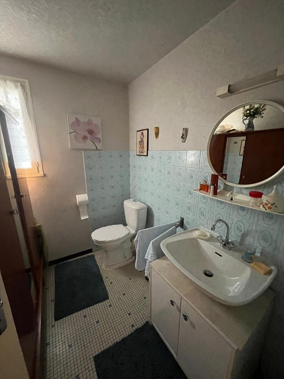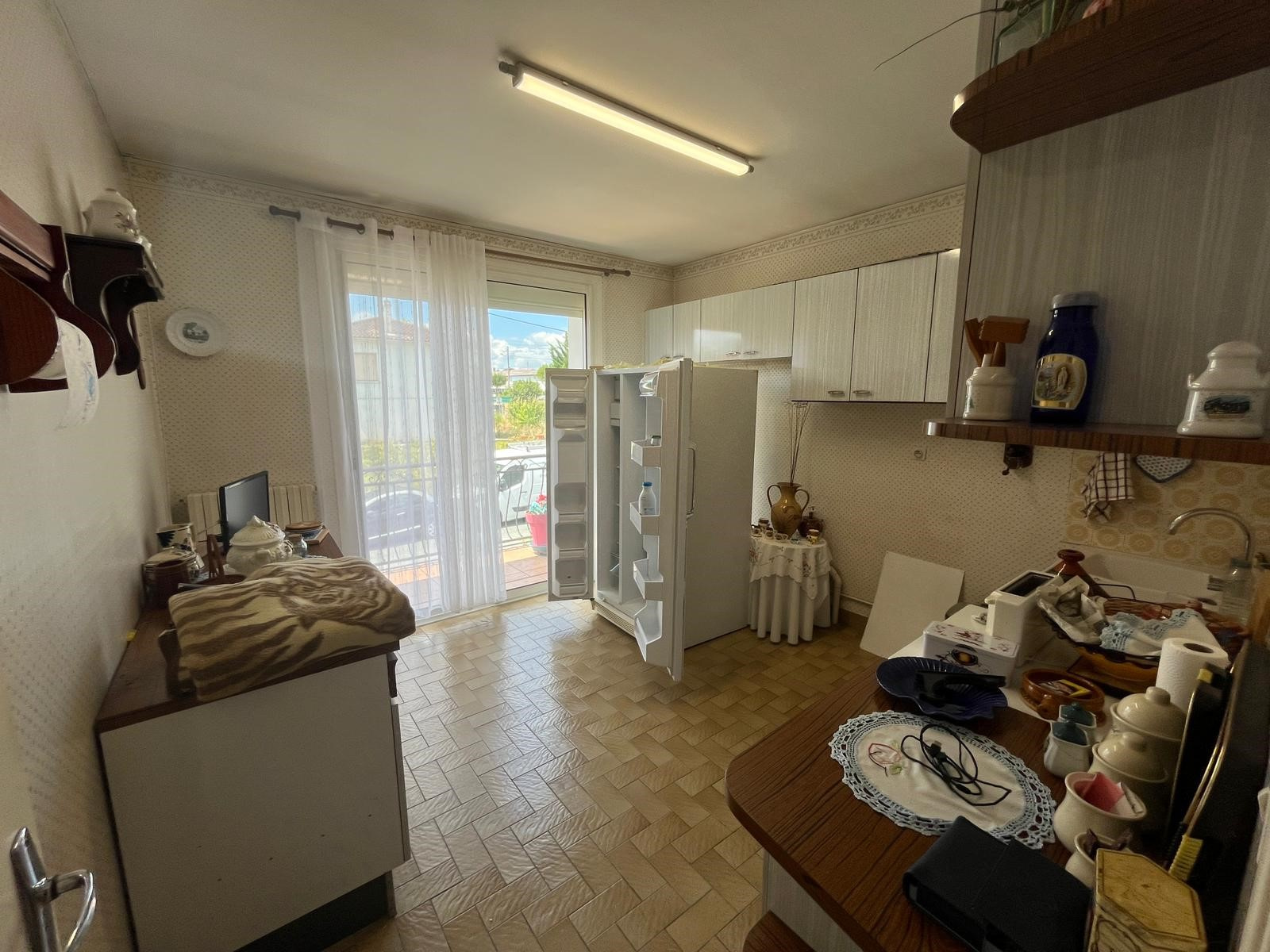 Au rez-de-chaussée, une belle entrée avec escalier mène à un séjour lumineux équipé d'une climatisation réversible et ouvrant sur un balcon agréable, parfait pour vos moments de détente. La cuisine, ornée de ses meubles d'époque et dotée elle aussi d'un balcon, allie cachet et fonctionnalité.