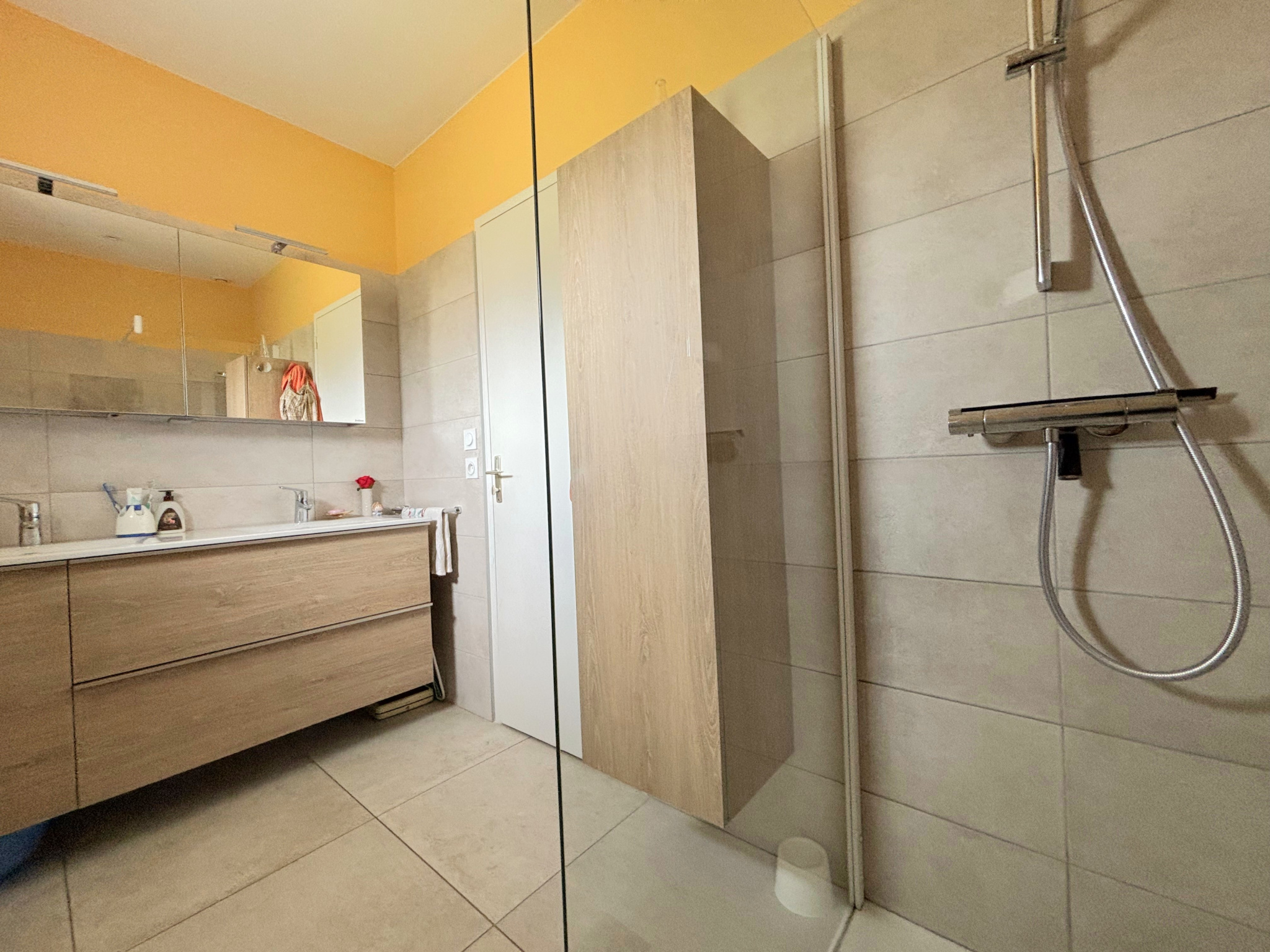 - Une salle de douche (douche bac extra-plat + meuble double vasques + miroir + sèche serviette + faïence)
