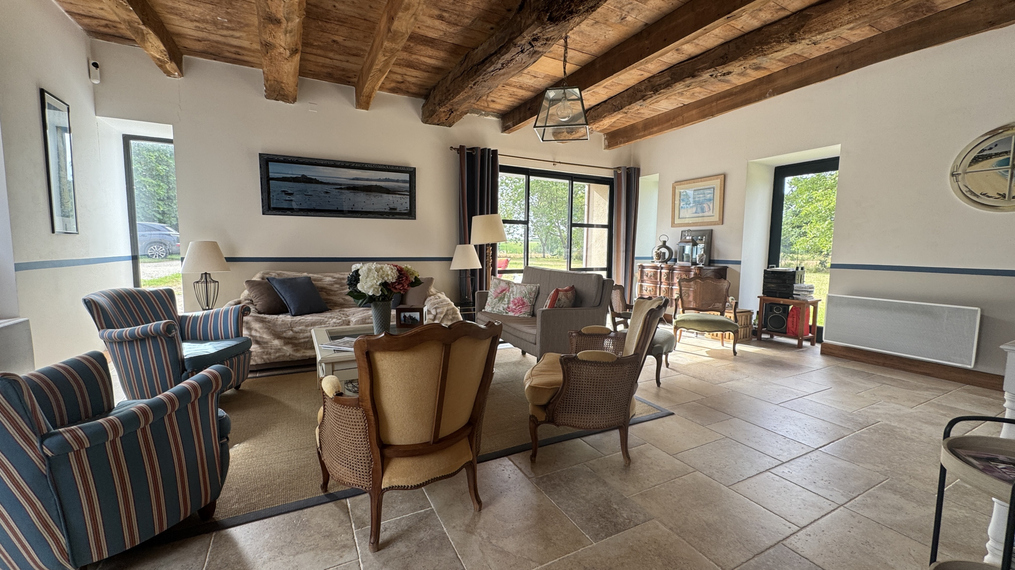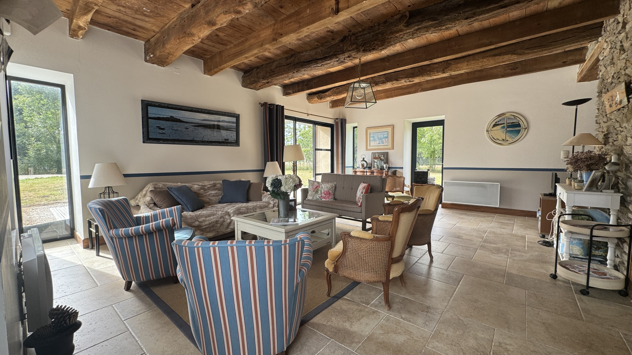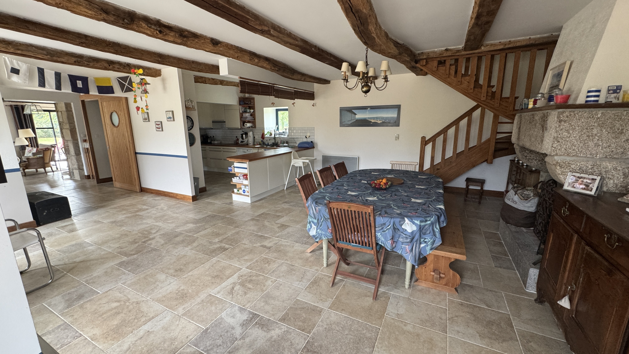 AIS - SAINT CAST LE GUILDO - Nichée au coeur de la campagne de Matignon, à seulement quelques minutes des plages et de la station balnéaire de Saint-Cast-le-Guildo, cette authentique longère en pierre offre un cadre de vie paisible, avec une vue dégagée sur les champs, garantie sans vis-à-vis grâce à sa situation en zone agricole. Édifiée sur un terrain de 1 919 m2, cette maison de caractère a bénéficié de deux rénovations successives : la première en 1991, la seconde en 2012, tout en conservant le charme de l'ancien. Le rez-de-chaussée se compose d'une entrée ouverte sur une vaste pièce de vie : salon, salle à manger et cuisine ouverte forment un espace convivial et lumineux. Un vestiaire, une buanderie et des WC complètent ce niveau. L'étage est accessible par deux escaliers indépendants qui mènent tout deux à un dégagement / palier distribuant six chambres (dont une chambre parentale avec une salle de bains et un WC), salle d'eau indépendante. En complément, la propriété dispose également d'un ancien four à pain, aujourd'hui utilisé comme espace de stockage, qui ajoute au charme de l'ensemble. Cette longère est une opportunité rare pour qui recherche le calme absolu, une vue dégagée préservée, et un cadre naturel, tout en restant proche des commodités et des plages de la Côte d'Émeraude.