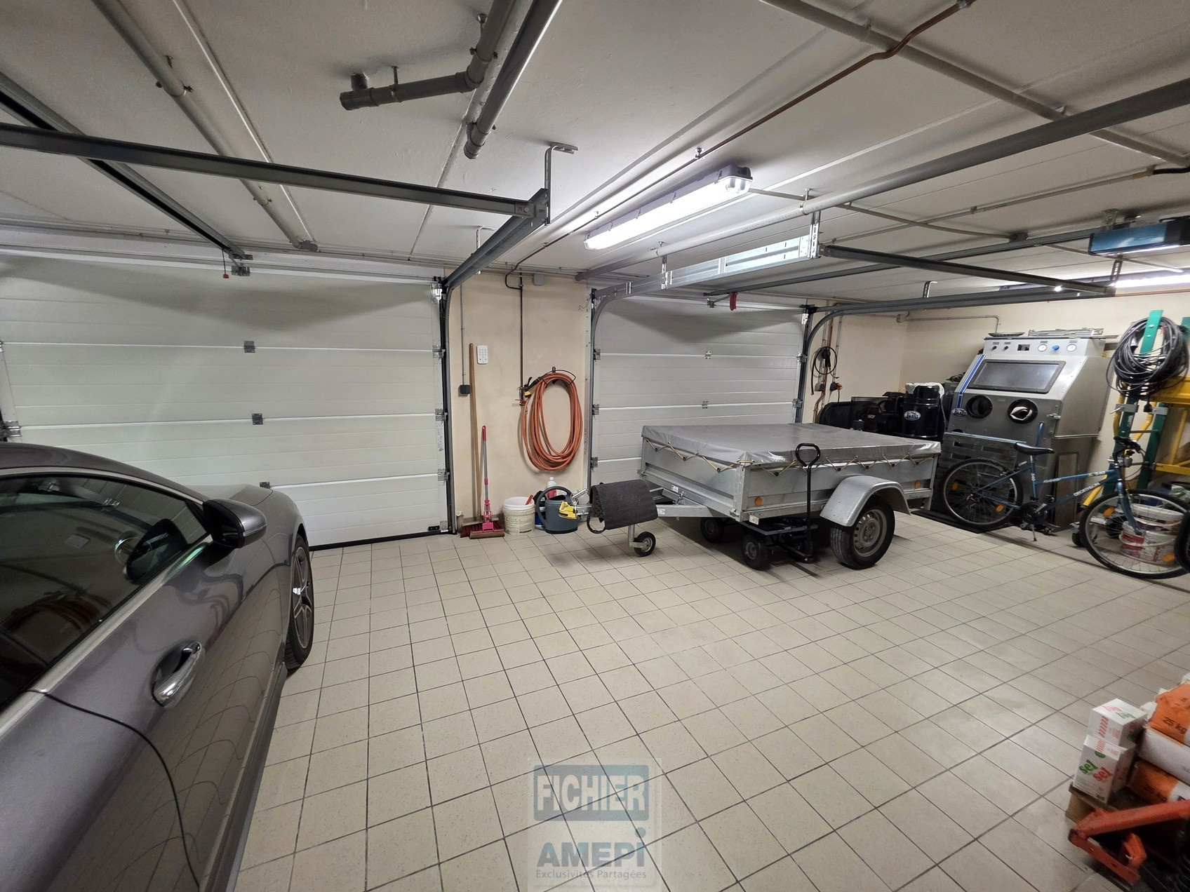 - Le sous-sol entièrement carrelé est composé d'un grand garage de 47m2 avec 2 portes automatiques, d'un atelier (et chaufferie), d'une cave, d'une buanderie et d'une grande pièce borgne (chauffée).