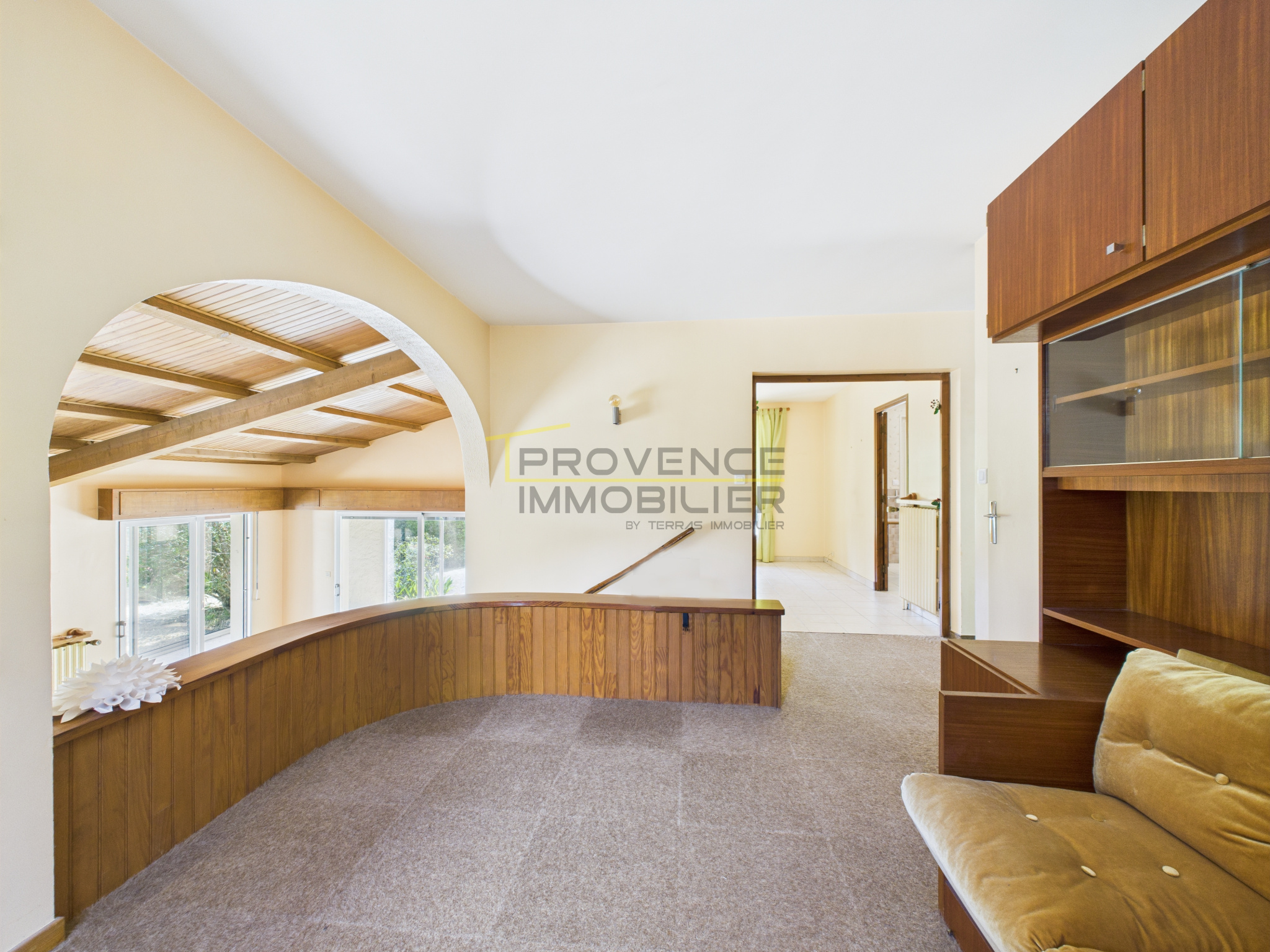 EXCLUSIVITE Provence Immobilier - Venez découvrir ce genre d'endroit, celui qu'on ne croise pas à chaque visite. Ici, pas de voisins pressés ni de routes bruyantes. Juste une maison bien posée, au bon endroit, avec la vue comme atout maître. Les travaux ne sont pas un problème, pour vous c'est l'emplacement qui prime avant tout. Cette maison de 153 m2 de surface habitable s'étend sur un grand terrain de 8 000 m2 en position dominante avec piscine. L'agencement intérieur sera à repenser mais les volumes sont là. Actuellement un grand séjour, un salon avec terrasse, une cuisine séparée donnant accès à la terrasse, 4 chambres dont une chambre parentale et une véranda de 23 m2. Un garage complète le tout. Adoucisseur d'eau et forage. Bien coup de coeur, rare qui ne laisse pas indifférent. Sortie d'autoroute à moins de 10 min en voiture. Gare TGV accessible en 30 min. Pour plus de renseignements contactez Amandine MEIRELES au 06 18 08 93 27.