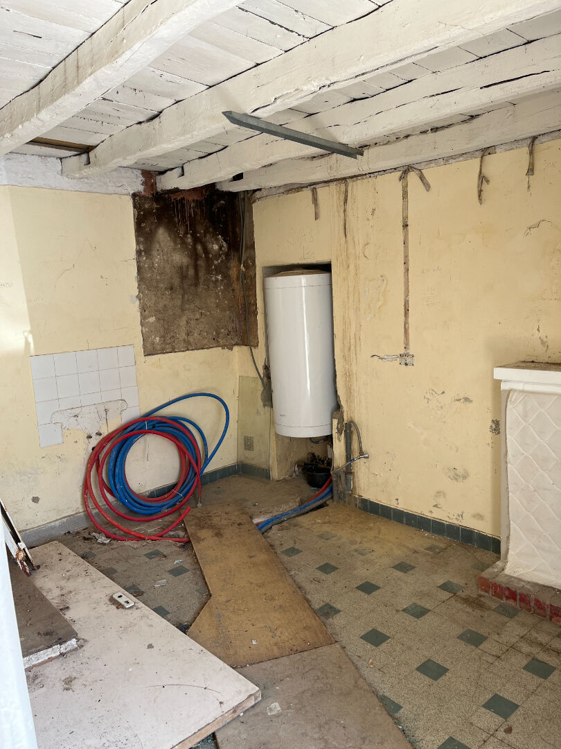 Au rez-de-chaussée, vous trouverez un espace pouvant accueillir une future cuisine, un salon/salle à manger, ainsi qu'une évacuation prévue pour l'installation de WC.