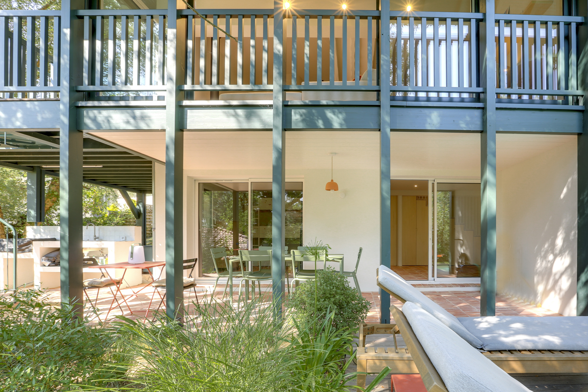 A l'extérieur, tout invite à la douceur de vivre : une terrasse dans les arbres, une seconde terrasse au bord de la piscine chauffée, une cuisine d'été. Chaque détail a été pensé.