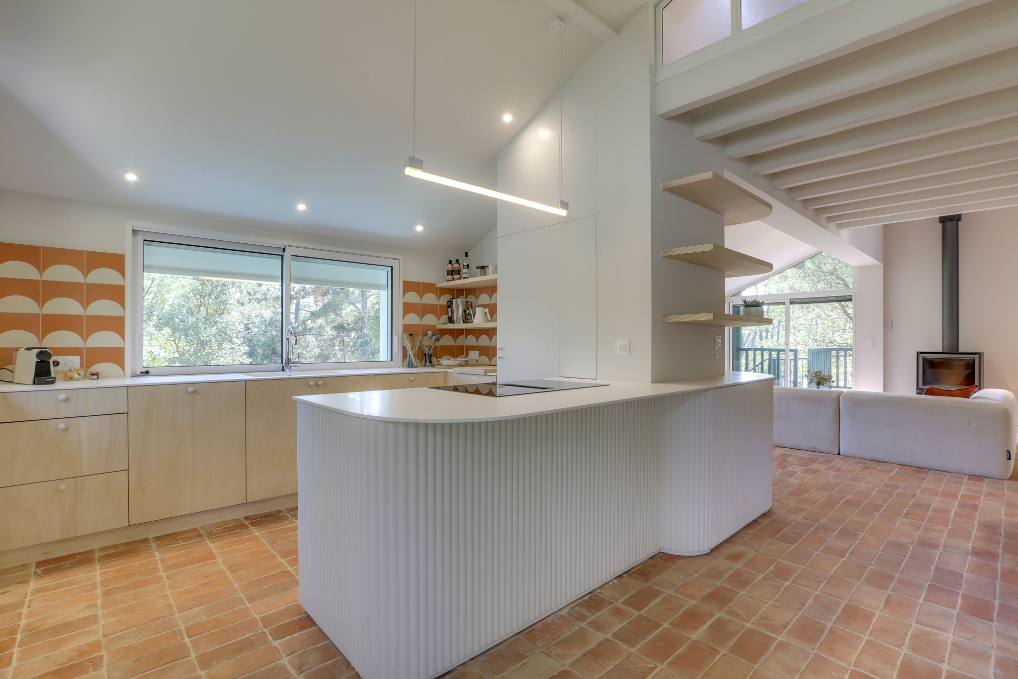 CO-EXCLUSIVITÉ - SEIGNOSSE - BOURDAINES - Perchée à flanc de nature, la Villa BAINES s'ouvre, depuis chaque pièce, sur une canopée majestueuse. Le regard se fond dans les arbres, la lumière pénètre avec délicatesse et chaque volume dialogue avec le paysage, composant une atmosphère à la fois paisible, élégante et discrète.