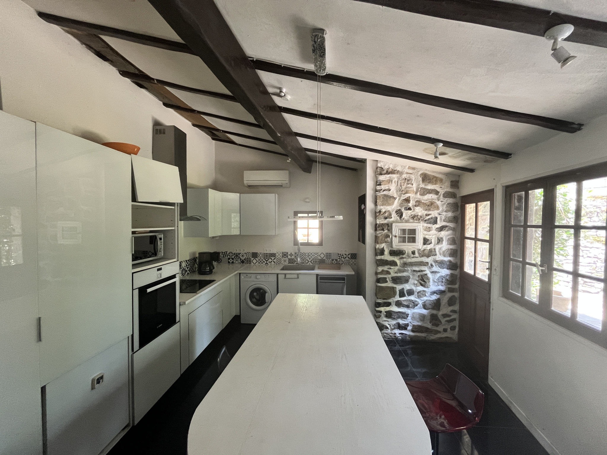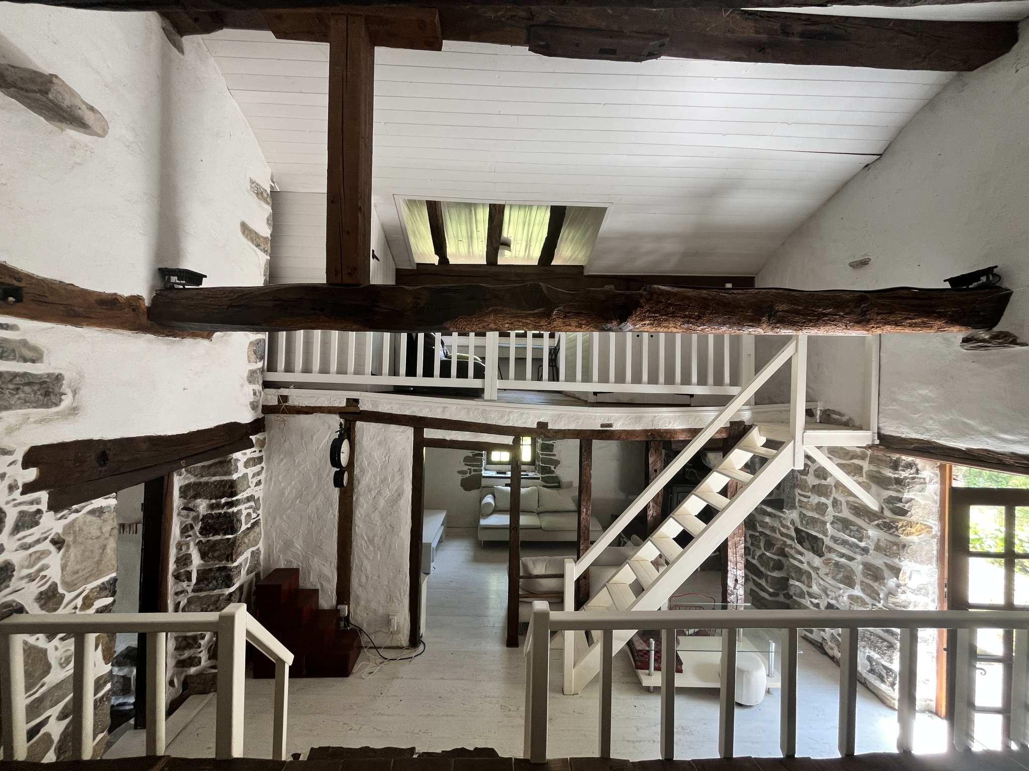 L'habitation comprend au rez-de-chaussée: entrée, cuisine indépendante, salon, chambre, mezzanine, salle de bains et WC indépendant. À l'étage, deux chambres mansardées viennent compléter l'espace de vie offrant une ambiance chaleureuse. Côté confort, climatisation réversible et poêle à bois.