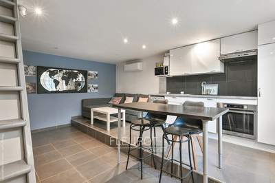 Local commercial mixte avec habitation T2 en parfait état avec rideau métallique électrique, une pièce de 73 m² idéal pour un artisan, un appartement de type 2 attenant, entrée sur séjour avec cuisine aménagée et équipée, une buanderie, un wc, à l'étage, une chambre, un bureau, une salle d'eau avec wc, climatisé, un espace mezzanine en béton de 20 m² à aménager
