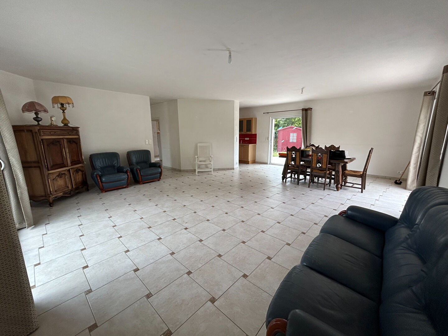 Maison d architecte spacieuse et lumineuse avec confort et fonctionnalités, proposant un hall d entrée , un séjour- salon de 50 m2 ouvert sur cuisine équipée et aménagée et , attenant un cellier spacieux.