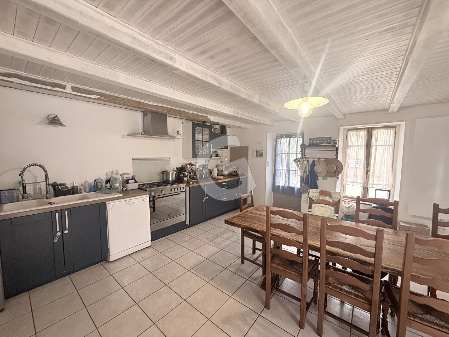 Cette bâtisse rénovée allie cachet, confort, et potentiel. Elle est composée premièrement d'une maison comprenant : au rez-de-chaussée une cuisine dînatoire aménagée , équipée, un salon, une buanderie cellier, un dégagement, un wc séparé, et une salle de bains . À l'étage : un palier desservant 3 chambres dont 1 avec un dressing, un bureau.