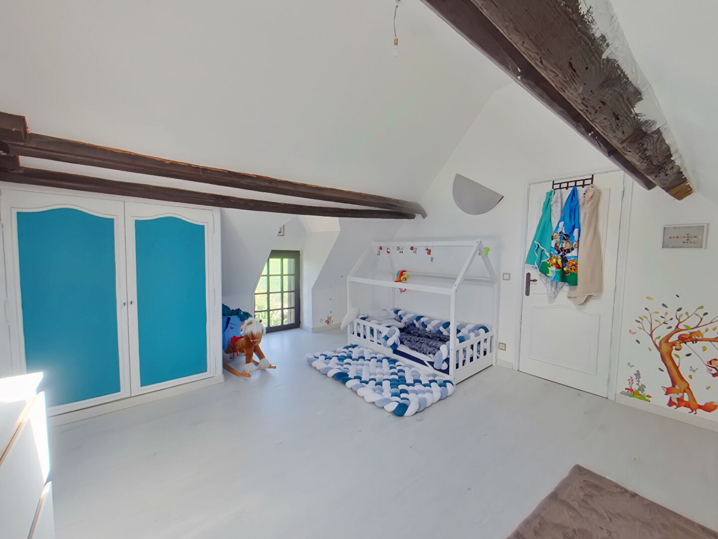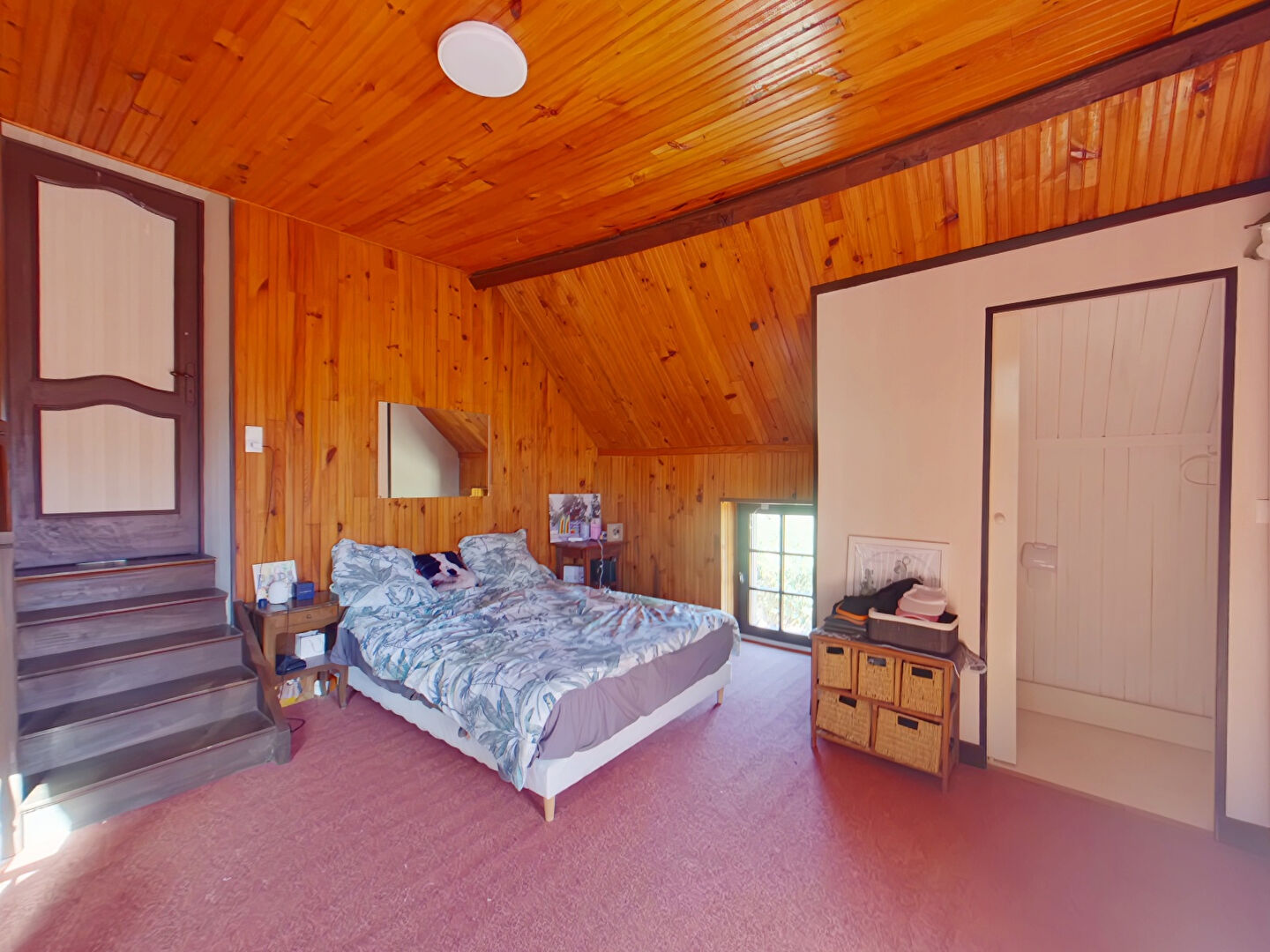 L'étage est accessible plusieurs escaliers intérieurs et extérieur, situés de chaque côté de la maison, desservant chacun une chambre. Une deuxième chambre, en enfilade, peut également bénéficier d'un accès privé depuis le salon. Un second bureau complète cet étage.