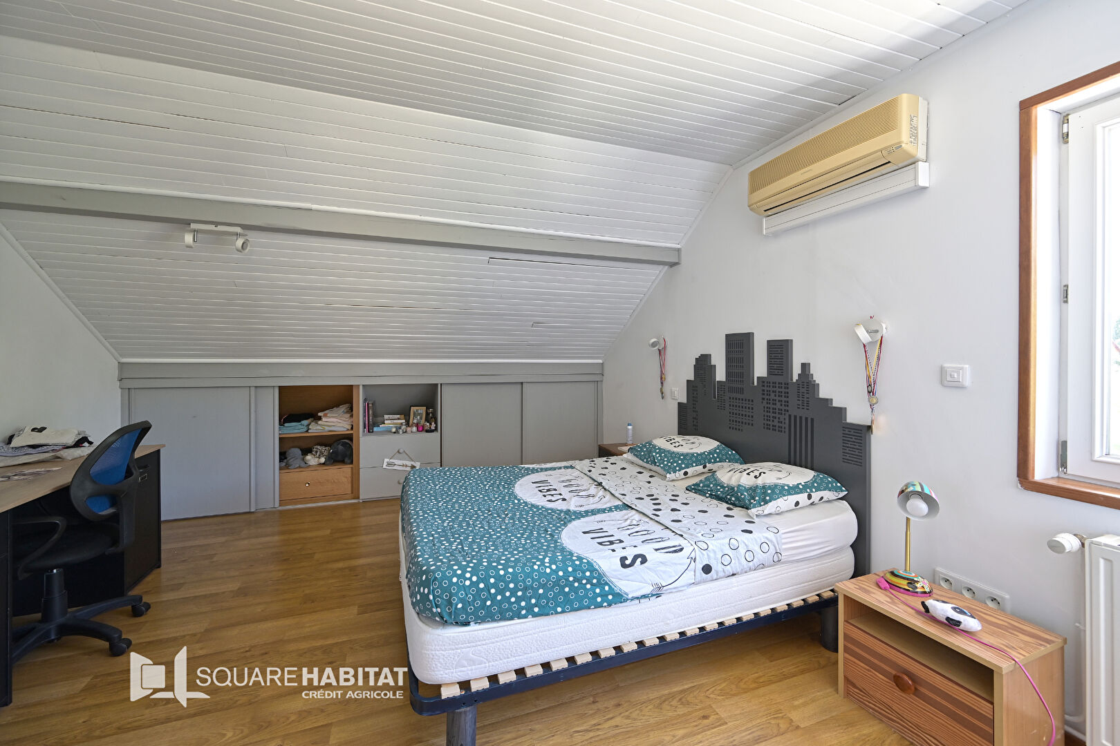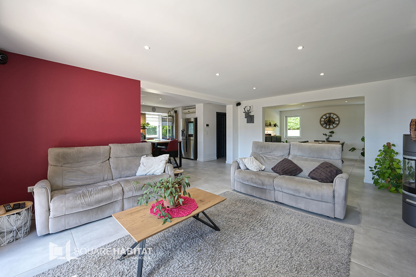 Au premier étage, une pièce de vie spacieuse et lumineuse est ouverte sur une cuisine moderne et entièrement équipée, le tout donnant sur une belle terrasse couverte. Ce niveau comprend également deux chambres, dont une suite parentale.