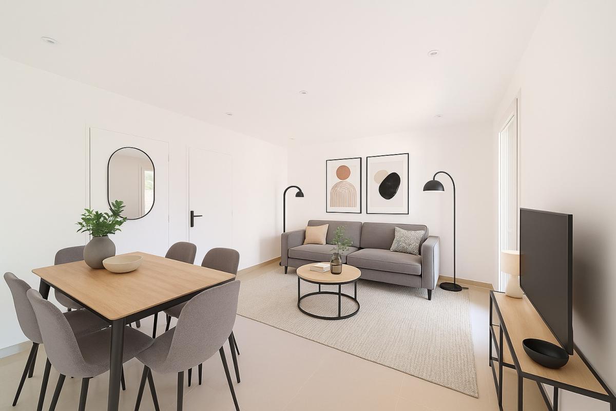Séjour lumineux donnant sur un grand balcon de 10 m², idéal pour profiter de l'extérieur