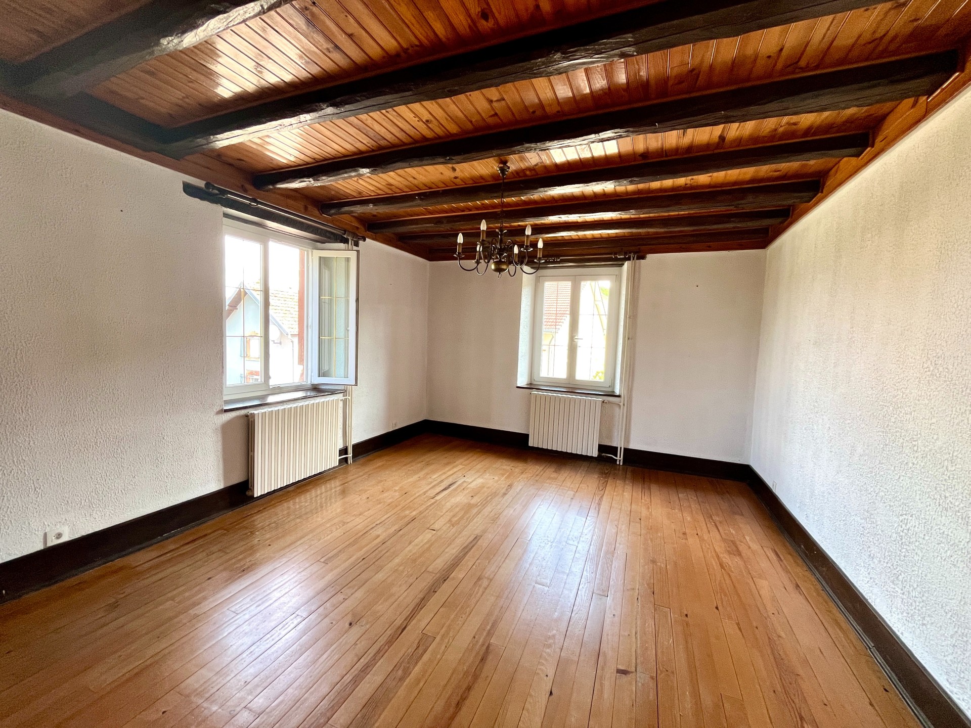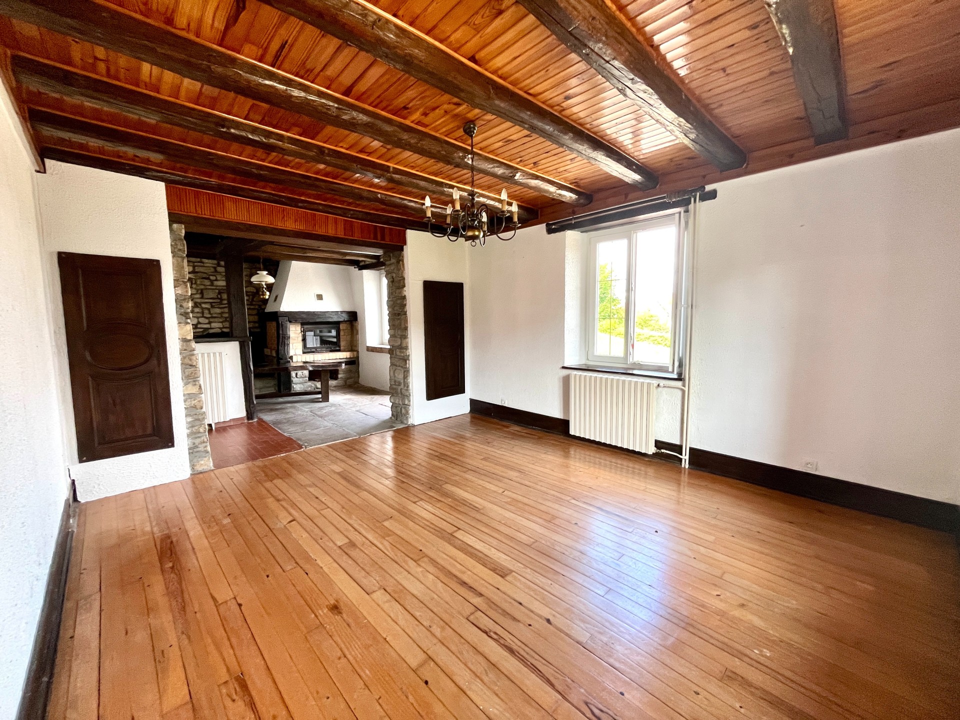 - au 1er étage , salon salle à manger de 35 m2 avec cheminée à foyer fermée et accès à l'extérieur par porte fenêtre