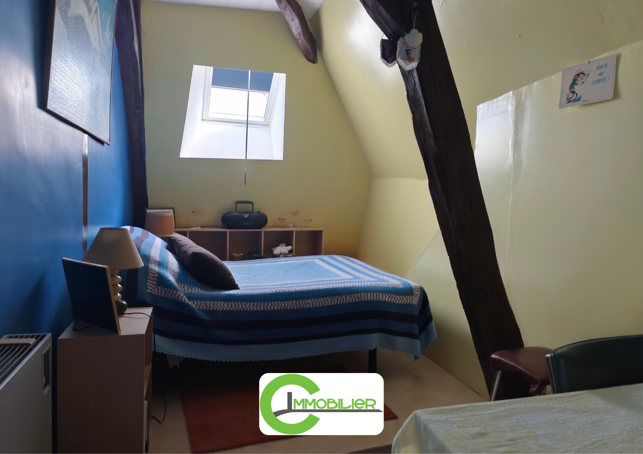 À l'étage, un palier avec coin bureau, un wc, deux chambres et une pièce à aménager selon vos envies.