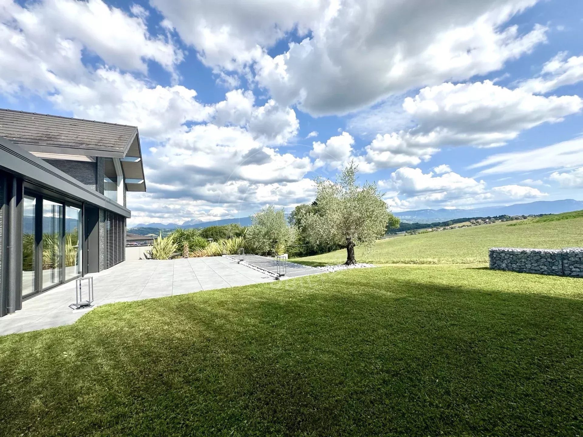 Tour des Lacs Immobilier vous présente cette belle maison contemporaine située sur les hauteurs de Rumilly, à 25 minutes d’Annecy dans un lotissement calme avec une vue dégagée sur un terrain agricole.