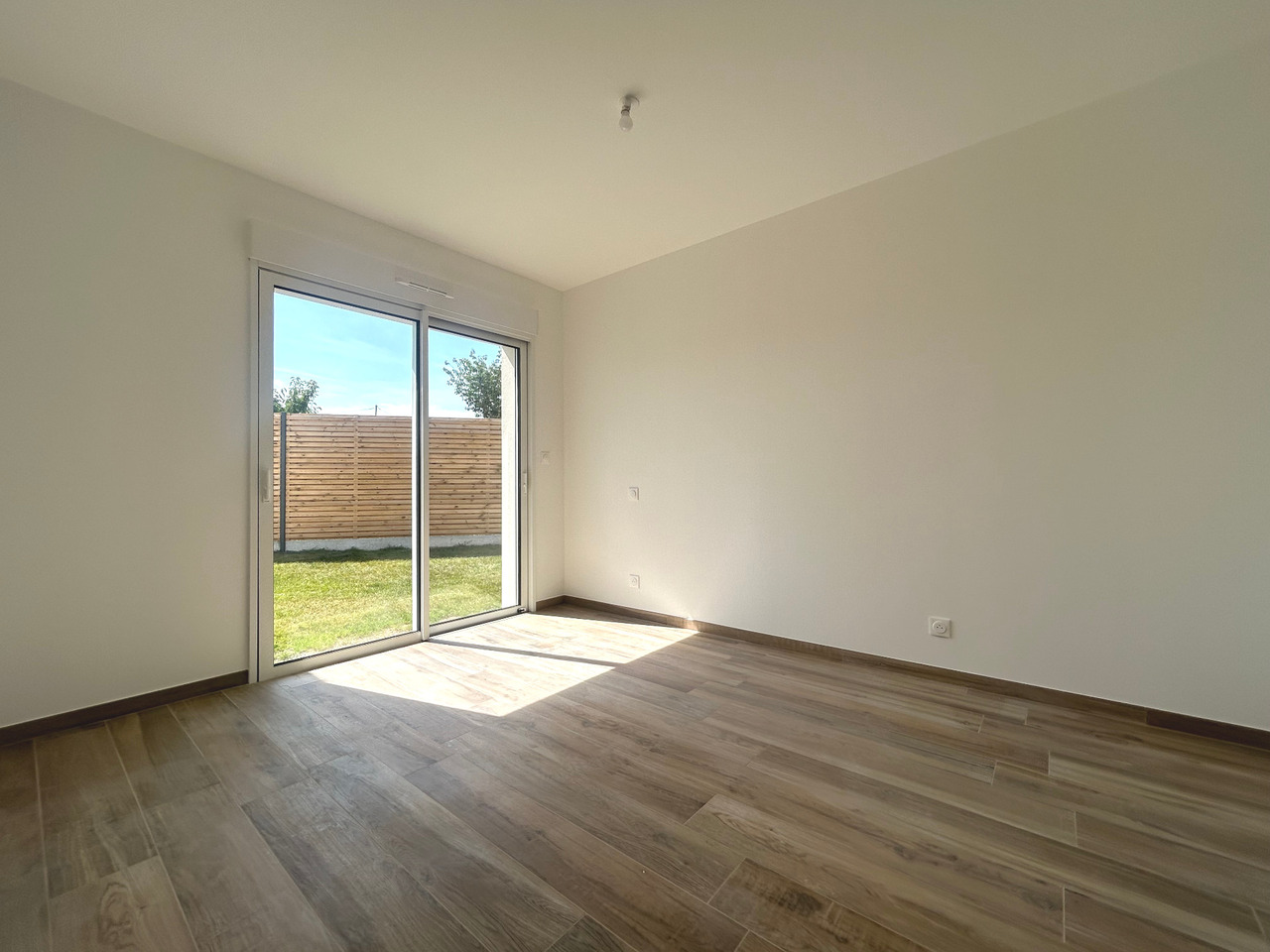 Entrée, séjour avec cuisine équipée à l'américaine 39 m² ouvrant sur terrasse et jardin sud-ouest, 2 chambres avec espace rangement, salle d'eau et WC;