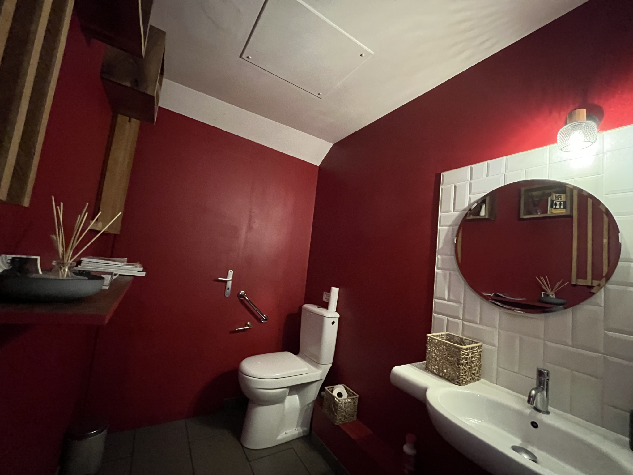 oCuisine arrière, espace plonge, bar, WC séparés avec dégagement et rangements