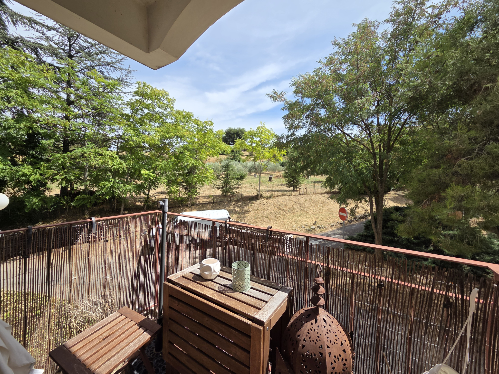 Lumineux et bien agencé, il offre deux chambres, une cuisine séparée, un spacieux séjour ouvrant sur un balcon avec une jolie vue dégagée sur les bois.