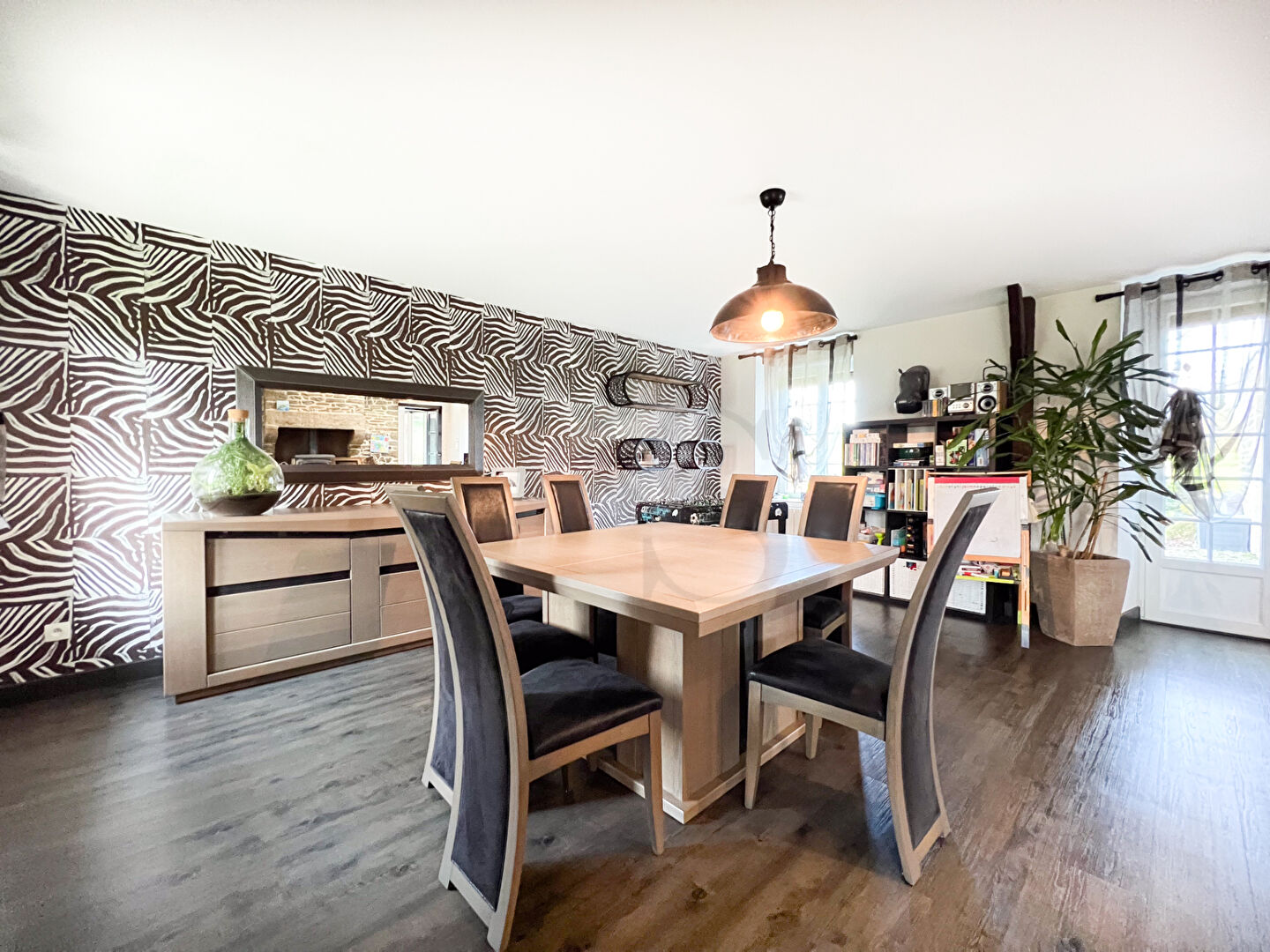 L'étage dessert trois chambres, une salle de bains, une salle d'eau avec WC, une mezzanine, un dégagement et un second WC. Une extension complète l'ensemble avec une suite parentale au rez de chaussée vous permettant de vivre de plain pied, un dressing ainsi qu'une grande pièce de 25 m² parfait pour le télétravail, salle de jeux ou cinquième chambre.
