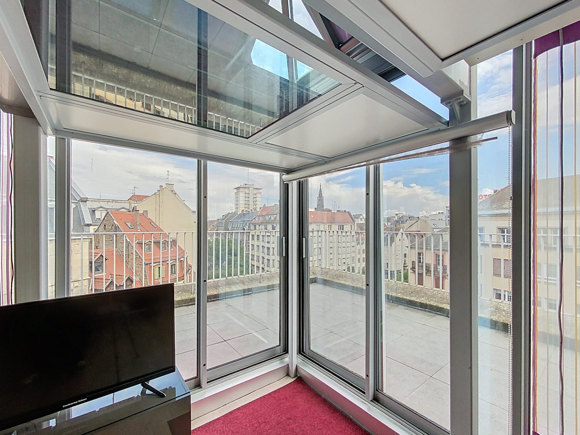 Au dernier étage d'un immeuble situé Petite Rue du Vieux Marché aux Vins, ce bien unique réunit deux appartements dans un même lot. De larges verrières, une lumière traversante et des vues imprenables sur la Cathédrale et les toits de Strasbourg font de cet ensemble un lieu de vie hors du commun.