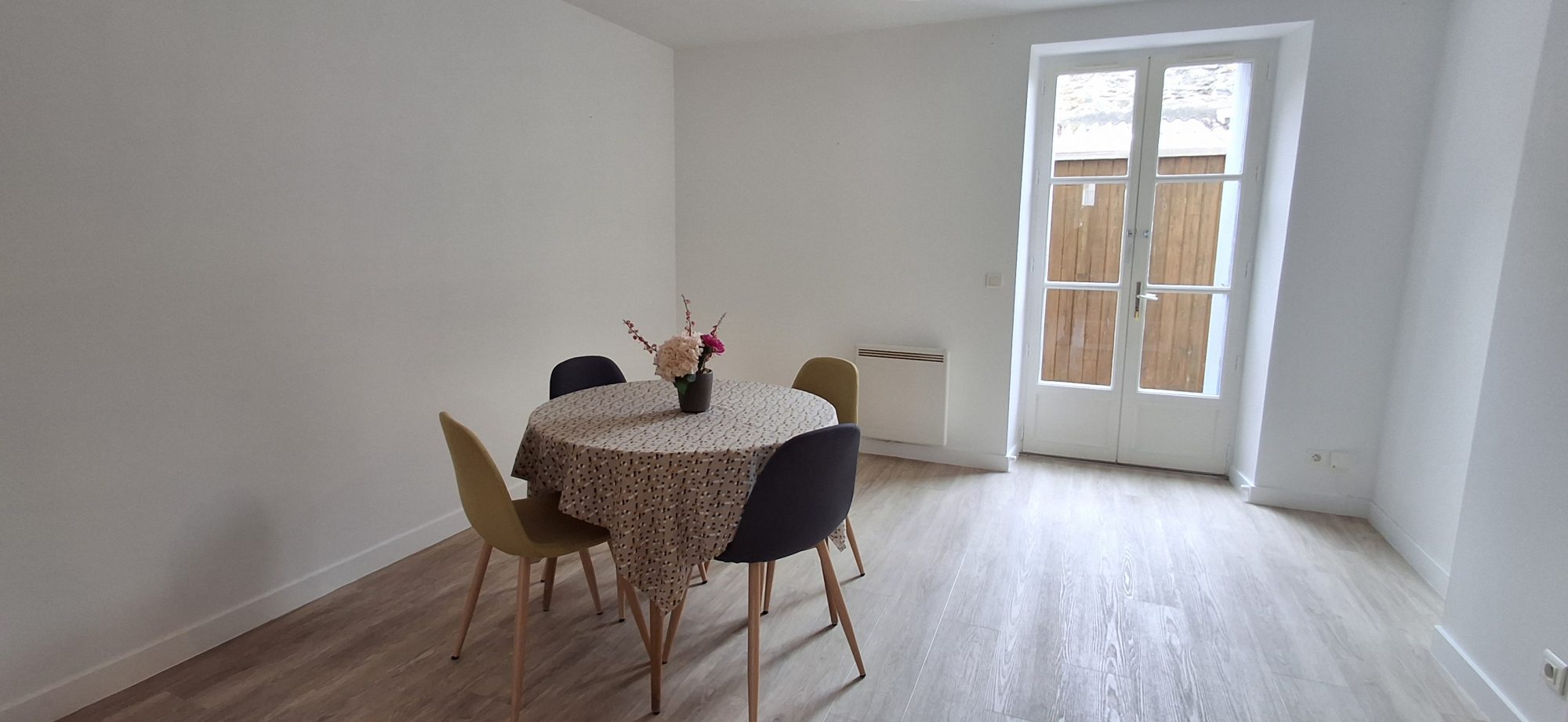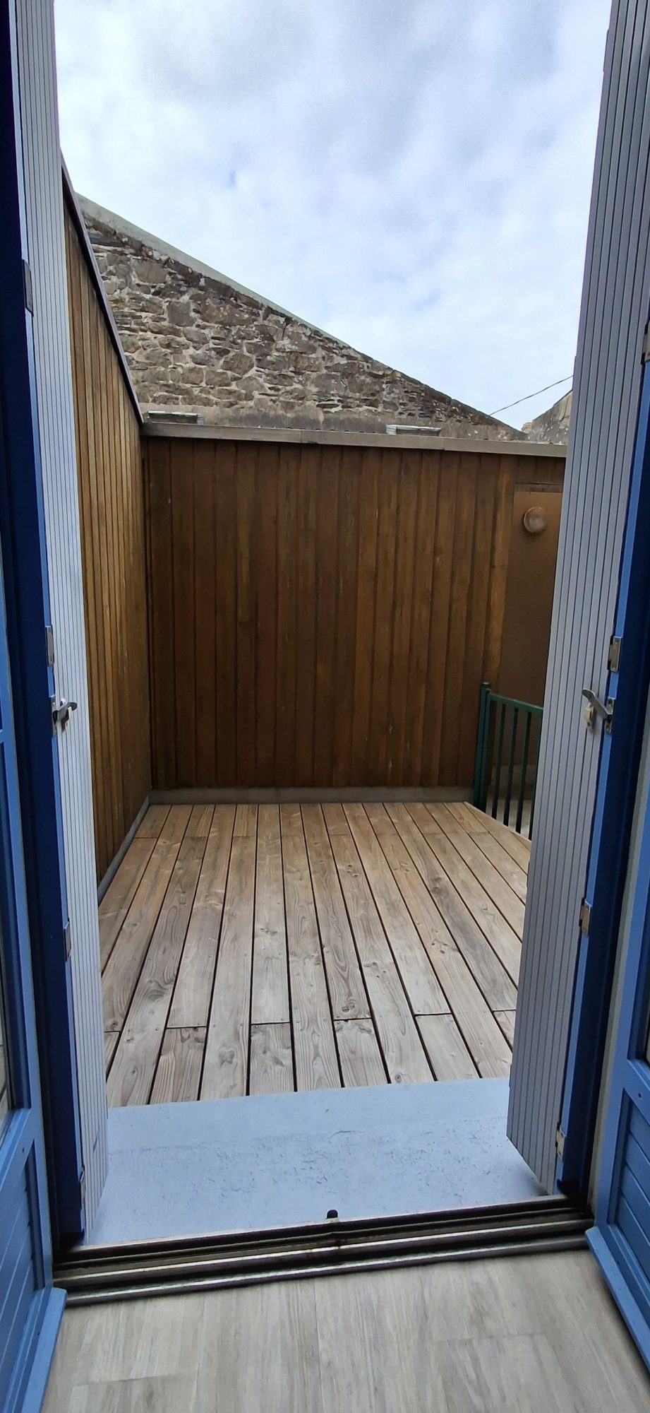 Cancale, place de l'église, appartement T2 de plain pied avec terrasse privative plein sud. D'une surface de 39 m2, il offre entrée avec placards, WC séparé, séjour ouvert sur terrasse, cuisine indépendante aménagée et équipée, salle d'eau, chambre et un grand cellier privé pour stockage et vélos.