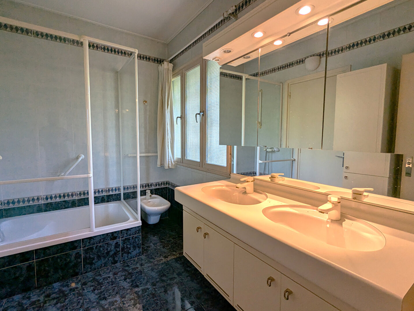 - Suite parentale avec salle de bains (baignoire + douche) et WC.