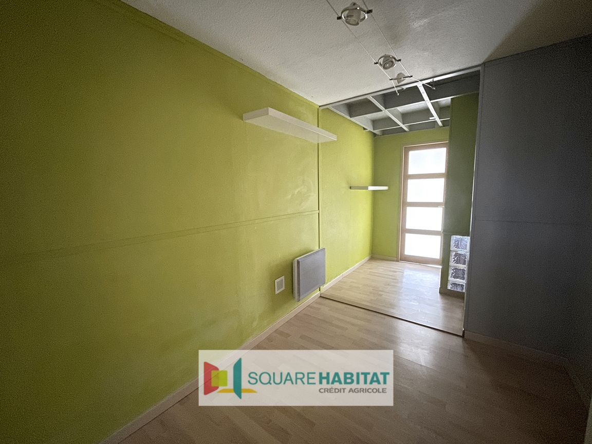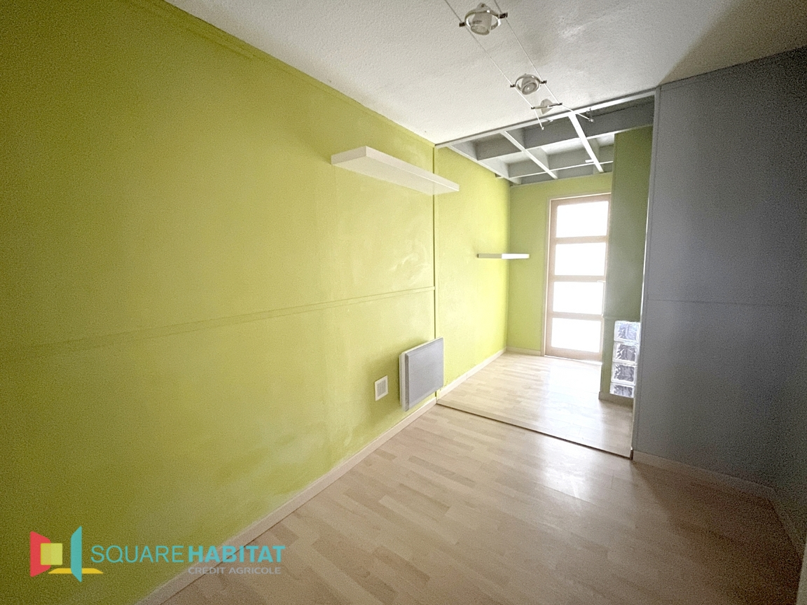 Au rez-de-chaussée, l'entrée s'ouvre directement sur une agréable pièce de vie avec cuisine ouverte, accompagnée d'un WC indépendant et d'un espace de rangement.