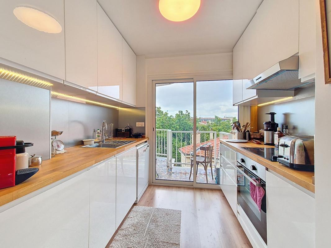 BAS CARNOT dans résidence confortable à 10 mn à pied de la rue d'Antibes, agréable appartement 3 pièces d'angle de 67,35 m² exposé Sud et Est . Il se compose d'une entrée, séjour lumineux, terrasse d'angle de 27 m², cuisine indépendante, dégagement, deux chambres, salle de bains avec wc. Appartement bénéficiant de double vitrage, climatisation dans le séjour et volets roulants électriques. En annexe un grand garage en sous-sol. Ce bien vous est proposé en Co-Exclusivité par votre Agence immobilière Orpi.