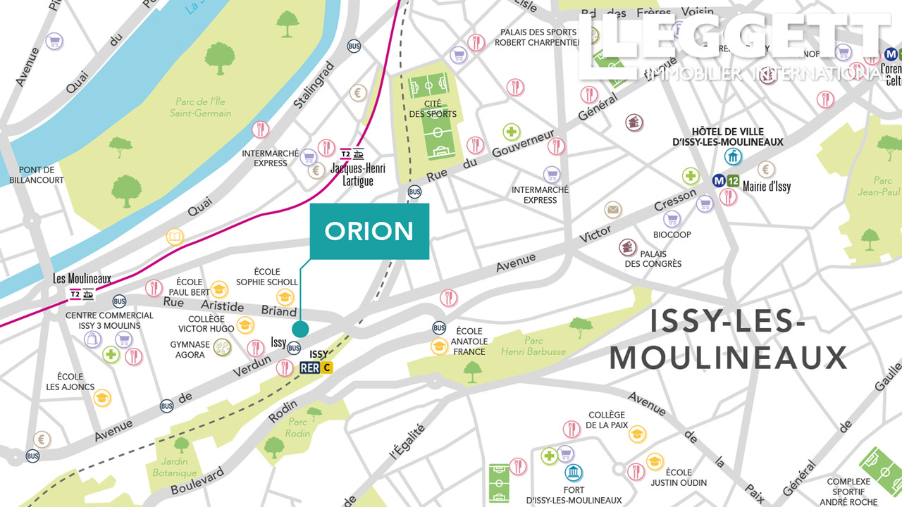 A39032JAC92 - La résidence Orion s'élève dans le quartier Léon Blum à Issy les Moulineaux, à seulement 6 km de Paris. Composée de 110 logements sur 16 étages, elle offre des vues exceptionnelles sur la Tour Eiffel depuis certains appartements. Du studio au 5 pièces duplex, chaque logement dispose d'un extérieur (balcon, loggia ou terrasse). Un potager partagé et une terrasse panoramique sont aménagés sur le toit. Transports à proximité immédiate : RER C, future ligne 15 (Grand Paris Express), tram T2, métro 12, bus. Orion répond aux normes RE2020 seuil 2022, et est certifiée NF Habitat HQE. Livraison prévue 2e trimestre 2028. Idéal pour habiter ou investir dans un quartier recherché.
