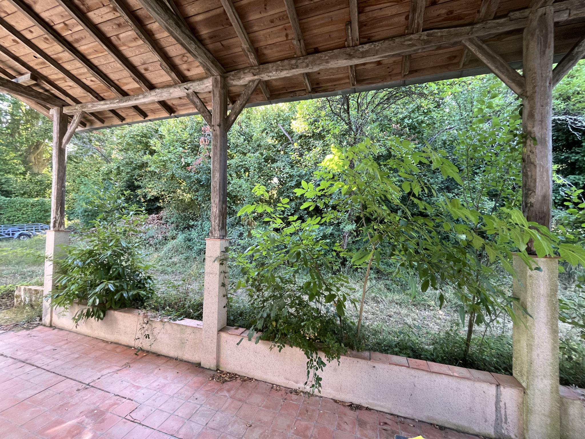 Le gros oeuvre est en bon état. Une grande terrasse couverte de 30 m2 et une cave complètent ce bien situé sur un terrain arboré de 3809 m2.