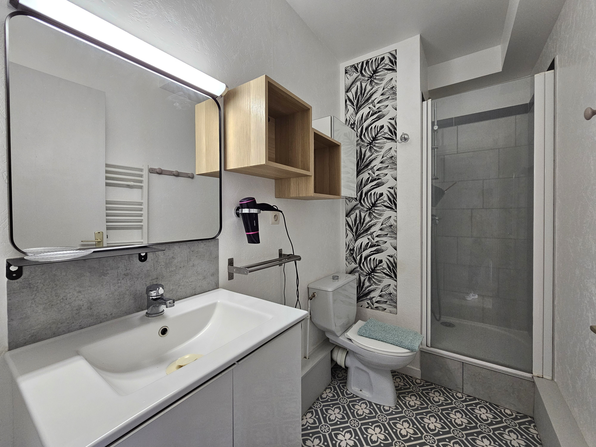 Entièrement meublé et équipé, l'appartement se compose d'un espace séjour de 13m2, d'un espace nuit de 8m2 et d'une salle d'eau avec douche et WC de 3m2. Lumineux, bénéficiant de nombreux rangements et d'un agencement fonctionnel, l'appartement est très agréable.