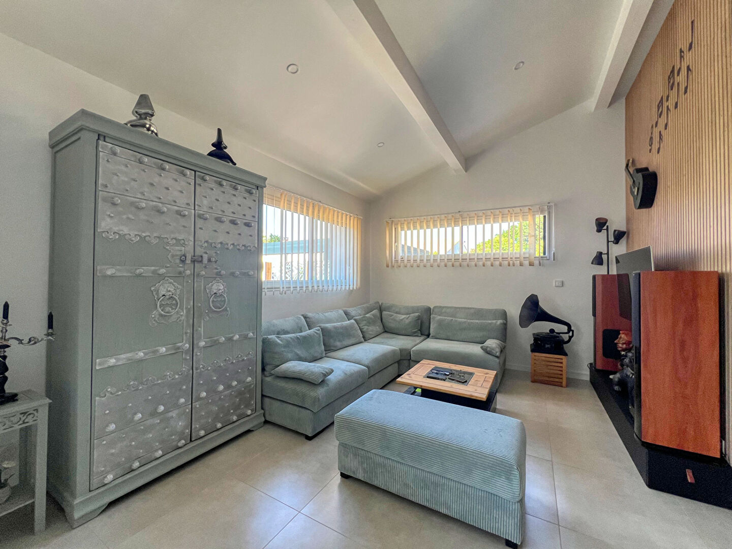 Elle se compose d'une entrée soignée avec placard, d'un WC indépendant, d'un vaste séjour-salon baigné de lumière avec plafond cathédrale offrant de beaux volumes, et d'une cuisine ouverte entièrement aménagée et équipée. L'espace de vie donne directement sur une terrasse ensoleillée agrémentée d'un store banne et d'un agréable jardin paysager.