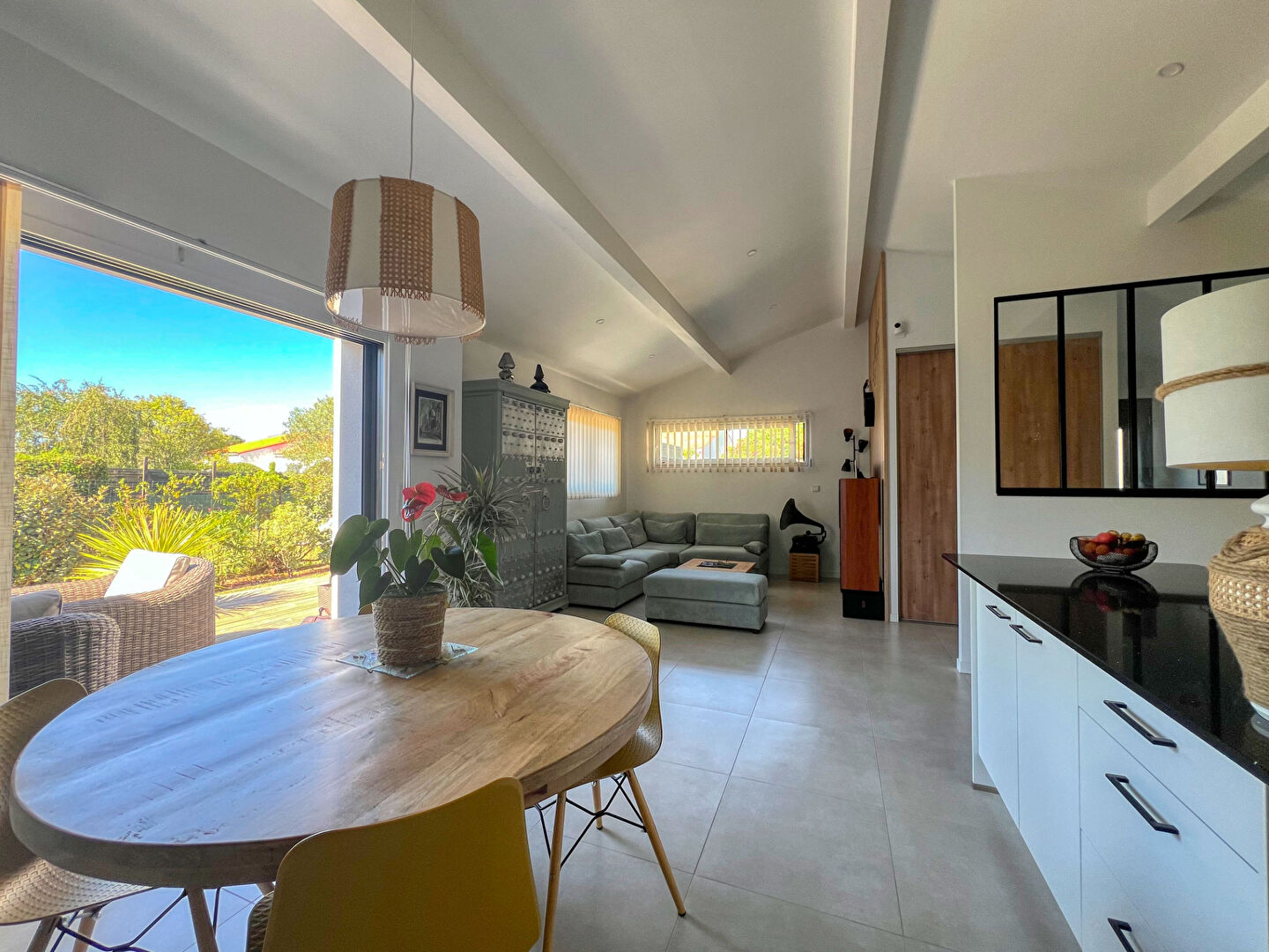 Édifiée en retrait de la voie publique, dans un environnement calme et intime, cette maison récente en parfait état propose des matériaux de qualité et une belle luminosité grâce à son exposition plein sud.