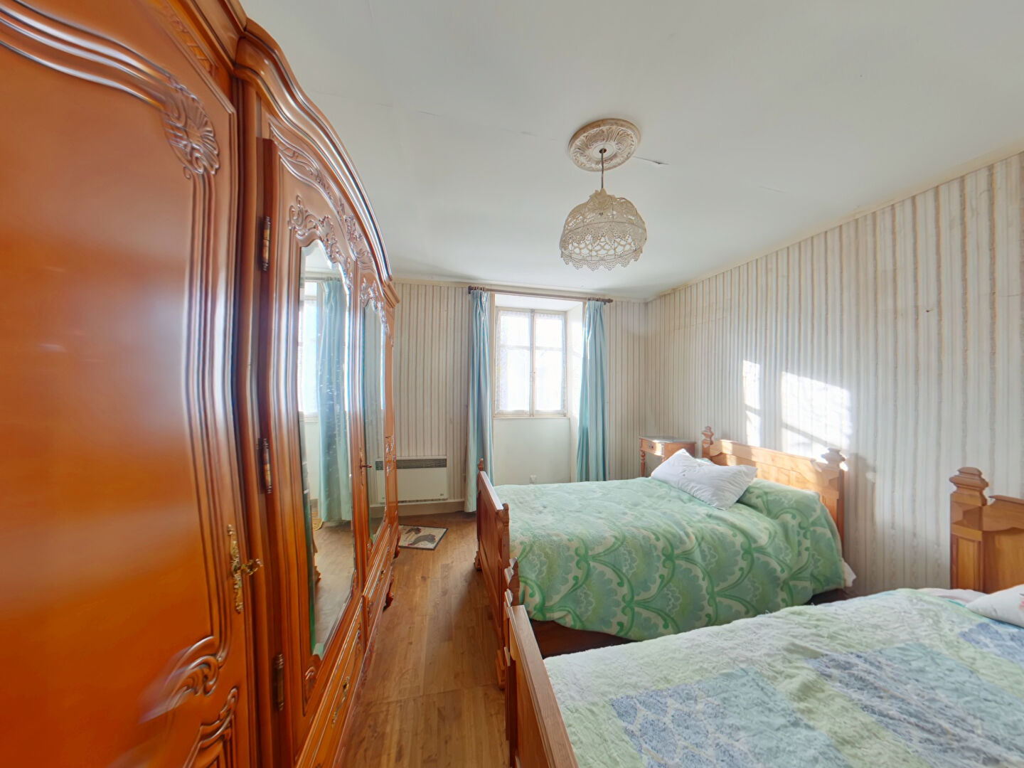 A l'étage, deux vastes chambres , salle d'eau, toilettes, grenier (pr rangement)