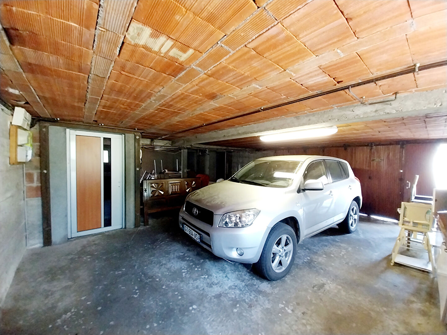 À l'extérieur, profitez d'un grand garage pratique pour votre véhicule et d'un magnifique jardin arboré de 1206 m², un véritable havre de paix où vous pourrez vous détendre, jardiner ou recevoir en toute tranquillité.