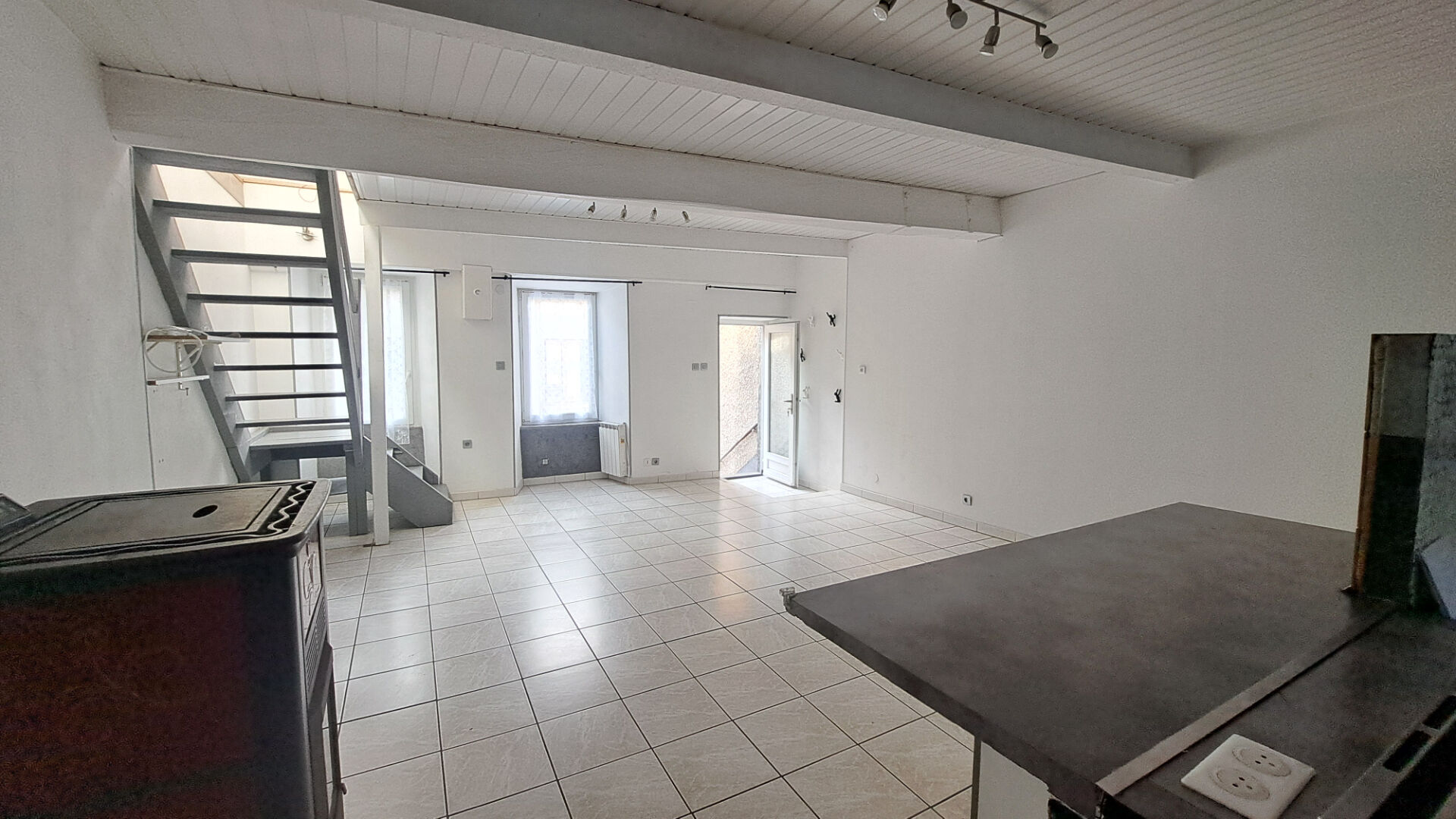 Maison mitoyenne d'environ 85M² avec garage 37M², au coeur de la ville, au calme proche transports, commerces écoles. Composée d'une grande pièce de vie (cuisine ouverte sur salon salle à manger) et un WC, à l'étage deux chambres ainsi qu'une salle de douche.