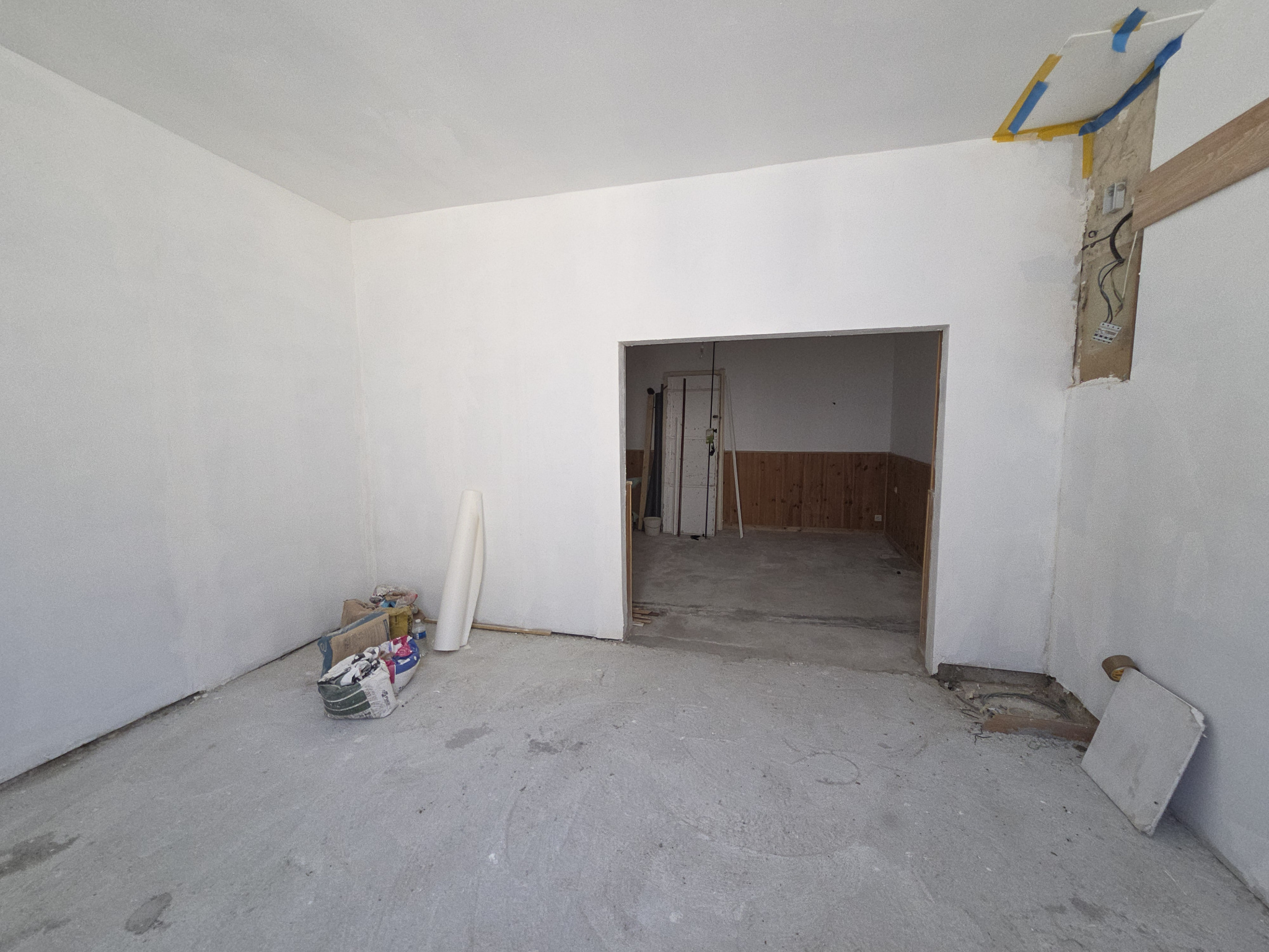 Mise en place d'une cuisine, réagréage du sol de la pièce de vie, réfection complête de l'électricité, mise en place d'un système de chauffage, finitions.