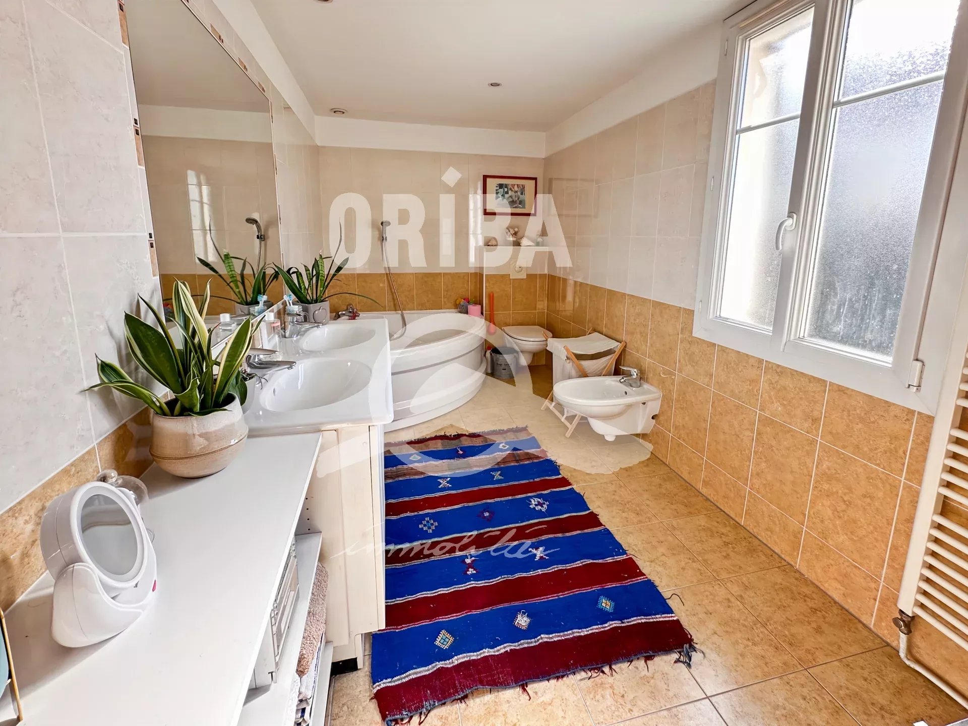 Un dégagement avec rangements dessert trois belles chambres, une salle de bains avec WC, ainsi qu’une chambre avec salle d’eau/WC privative.