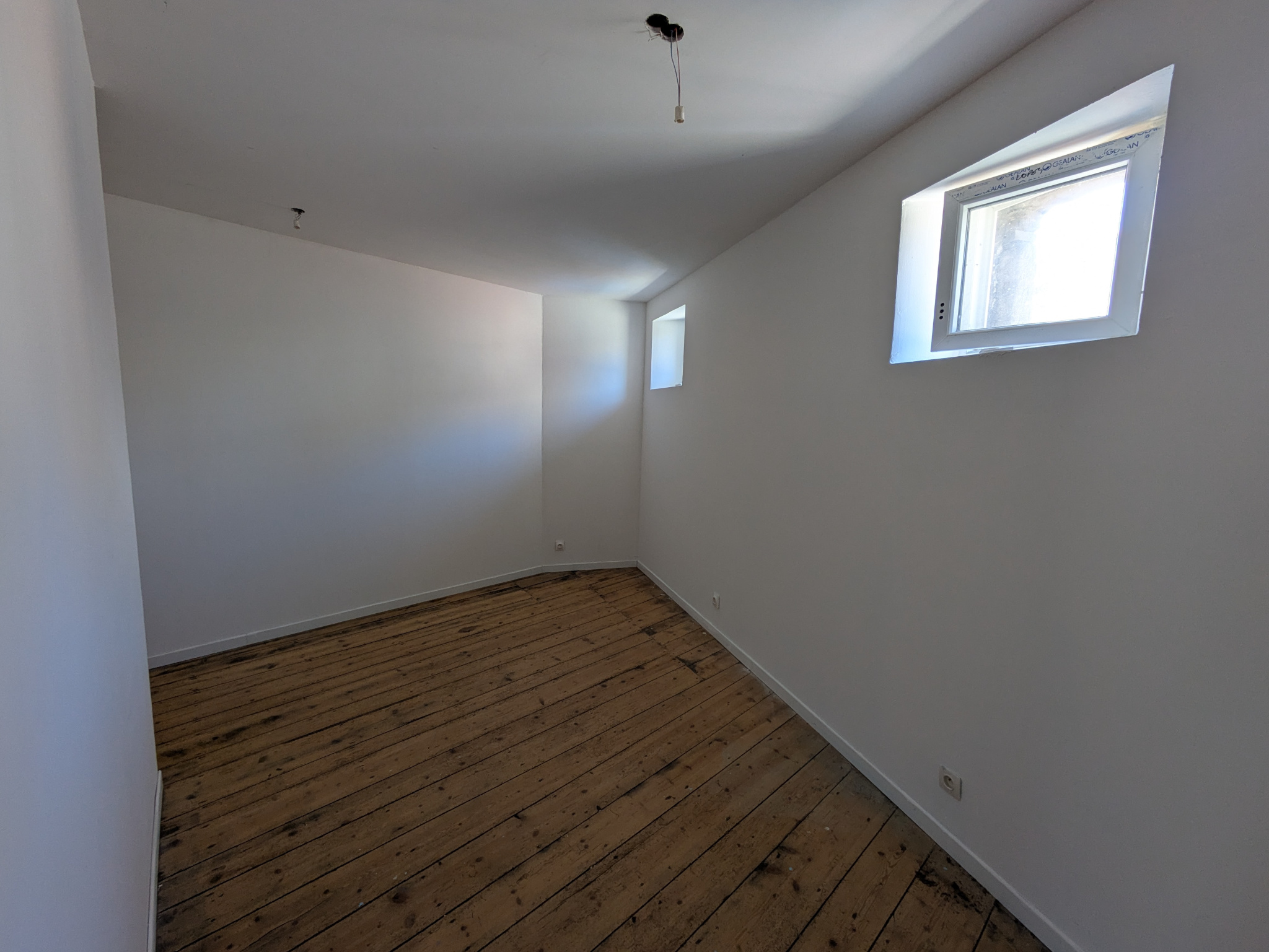 Au rez-de-chaussée, une entrée avec placard, donnant sur la pièce de vie avec cuisine ouverte partiellement équipée (four et plaque de cuisson). Au niveau +1, une chambre avec placard, une salle de bain et un WC indépendant avec lave-mains. Au 2ème étage, 2 chambres supplémentaires.