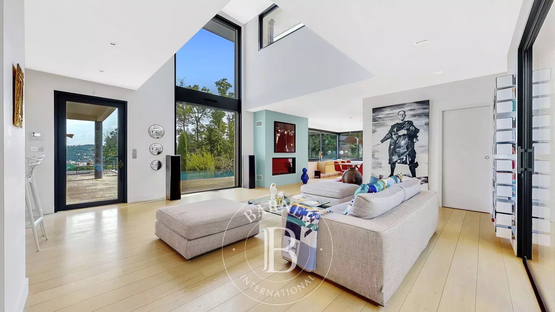 EXCLUSIVITÉ - VIENNE. Située dans un secteur résidentiel et calme à 3 minutes de la gare d'Estressin, cette maison contemporaine de 5 pièces, en position dominante aux belles prestations, construite en 2013 et dessinée par un architecte de renom bénéficie d'une vue imprenable sur le Rhône.
