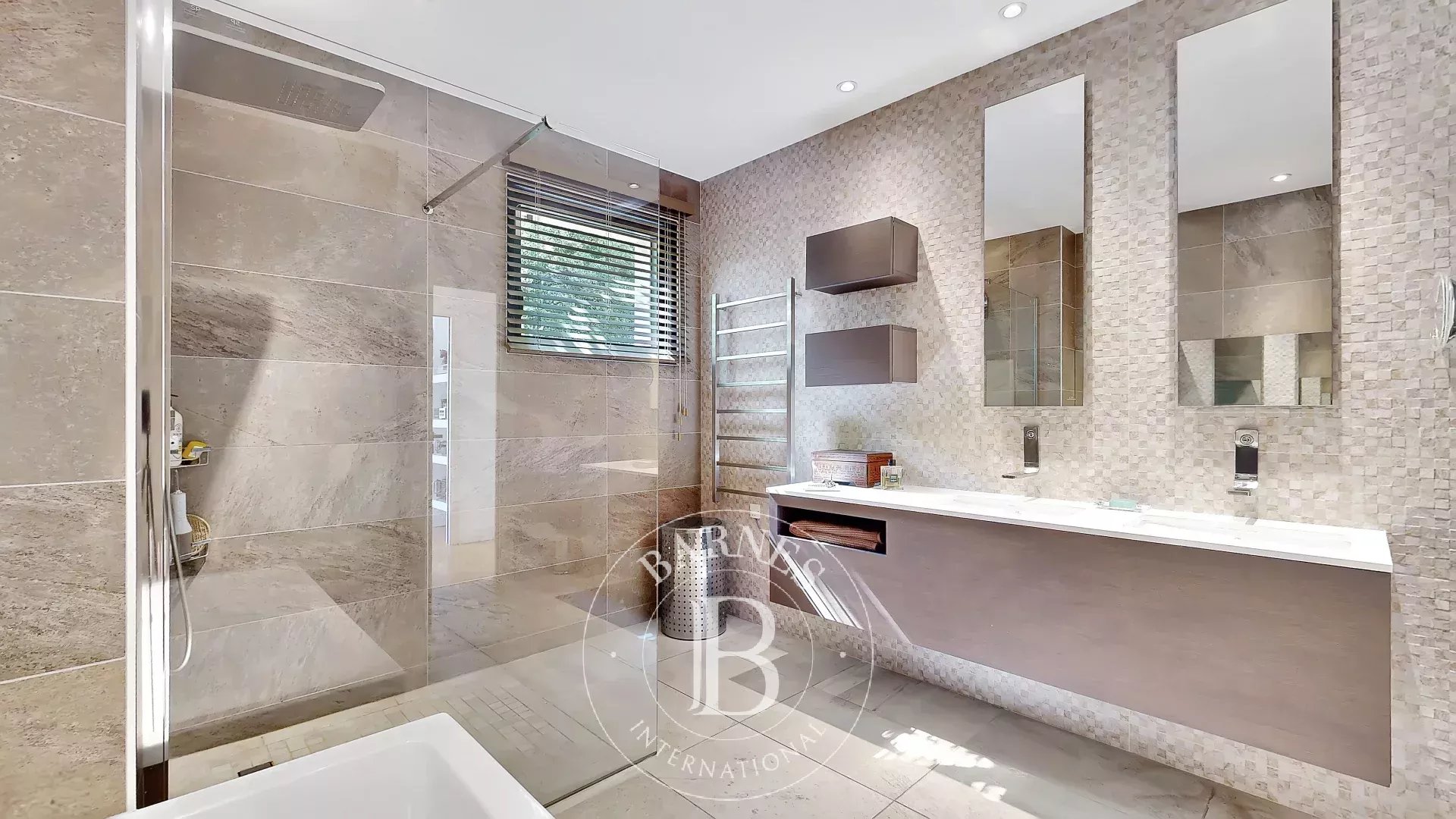 Le rez-de-jardin se compose d'une grande pièce à vivre avec salon et salle à manger prolongée d'une cuisine ouverte donnant sur une terrasse extérieure abritée, d'une suite parentale ainsi qu'une autre chambre. A l'étage vous disposerez d'une troisième chambre, d'une mezzanine faisant office de bureau pouvant être facilement transformé en 4ème chambre ainsi qu'une salle de bains. Le sous-sol quant à lui offre un atelier, un cellier, une buanderie, une cave et un garage pour 2 voitures.