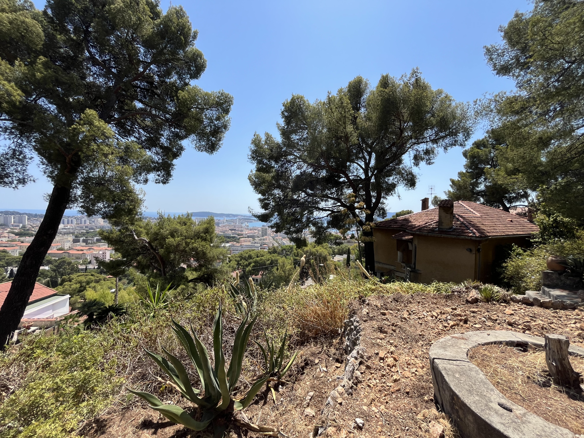 TOULON FARON - Située dans un secteur prisé en position dominante sur les hauteurs de la ville, magnifique maison ancienne des années 30, avec fort potentiel et incroyable vue panoramique à 180o sur la mer et la Rade. La propriété bénéficie d'un terrain en restanques de plus de 2000 m2 comprenant un cabanon faisant office de dépendance et un double garage de 40 m2. Elle se compose au rez-de-chaussée de 3 chambres dont une avec salle d'eau, une buanderie, 2 celliers et une salle de bains, WC ; à l'étage vous trouverez 2 autres chambres, un grand espace de vie donnant sur une grande terrasse, une cuisine, une salle de bains et un WC. Le calme et la tranquillité sous les pins ombragés font de ce bien un lieu de vie unique et rare.