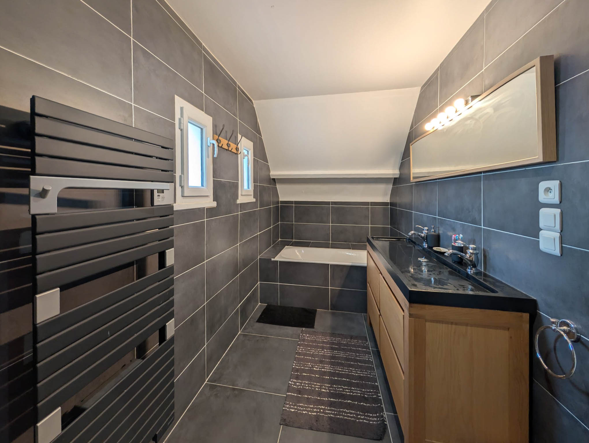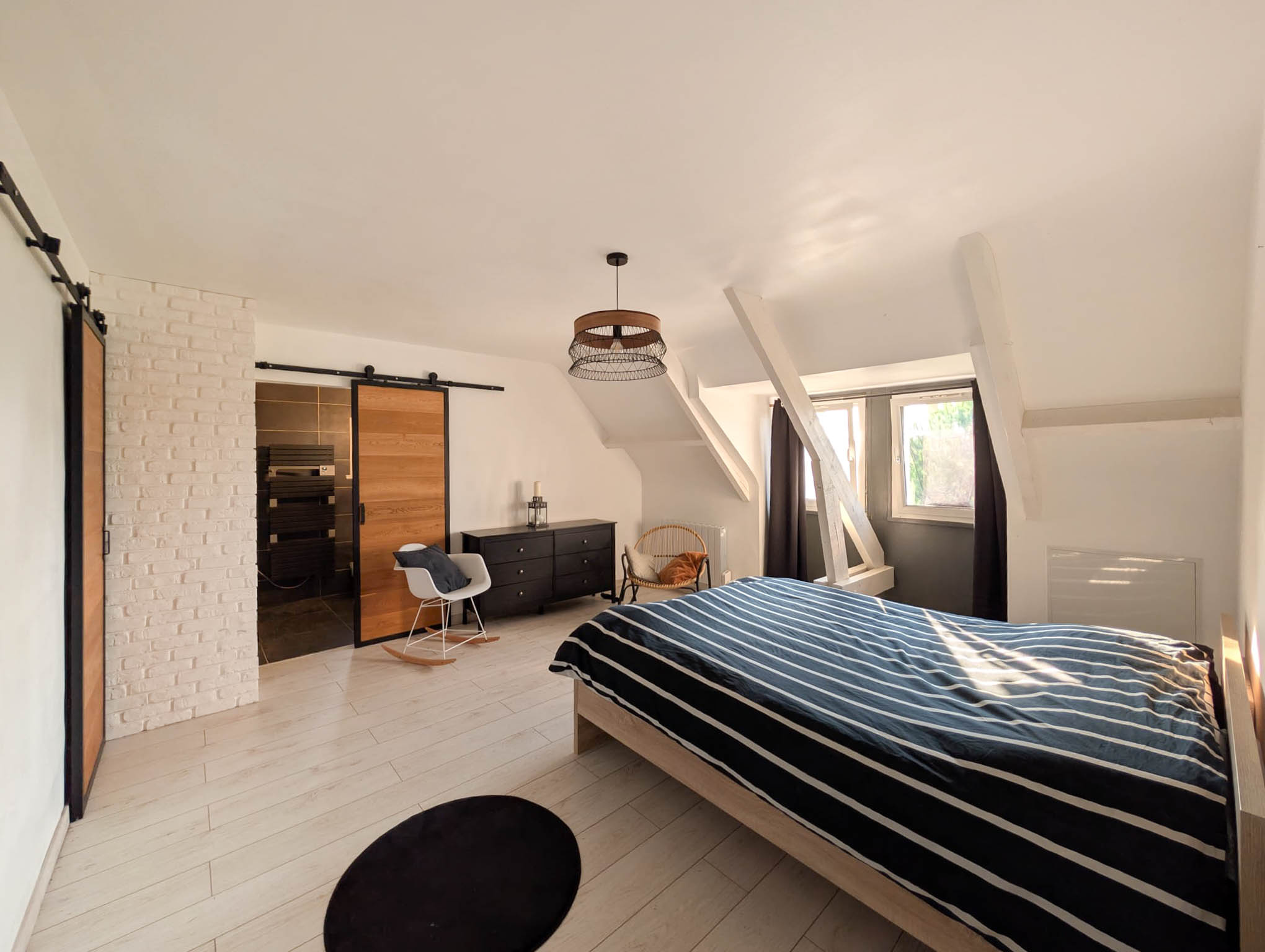 À l'étage, l'espace nuit s'organise autour d'une belle suite parentale avec salle de bain privative, équipée d'une douche, d'une baignoire, et d'un dressing attenant. Vous y trouverez également une seconde chambre, un bureau pouvant faire office de chambre d'enfant ou d'appoint, ainsi qu'une salle d'eau indépendante avec WC.