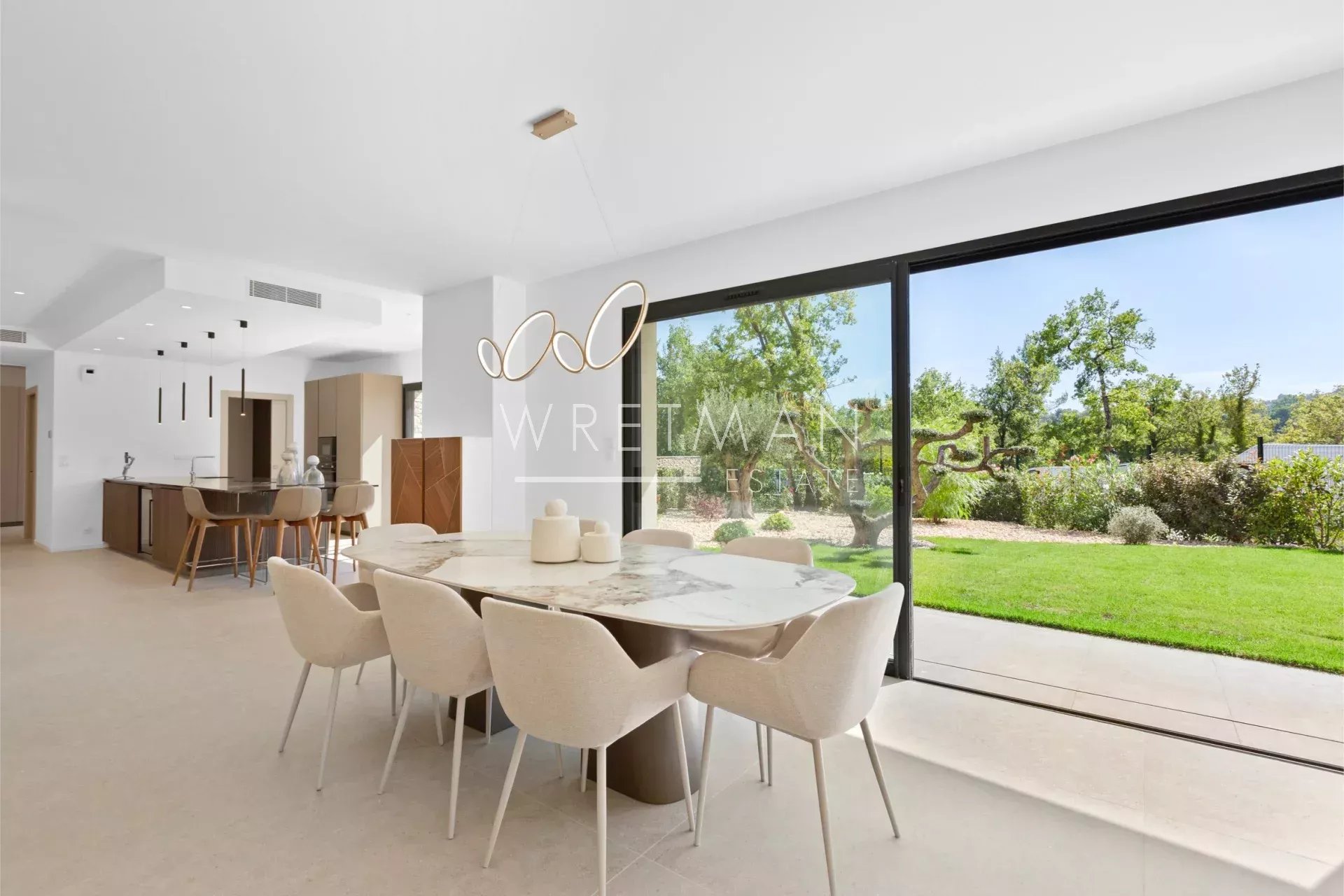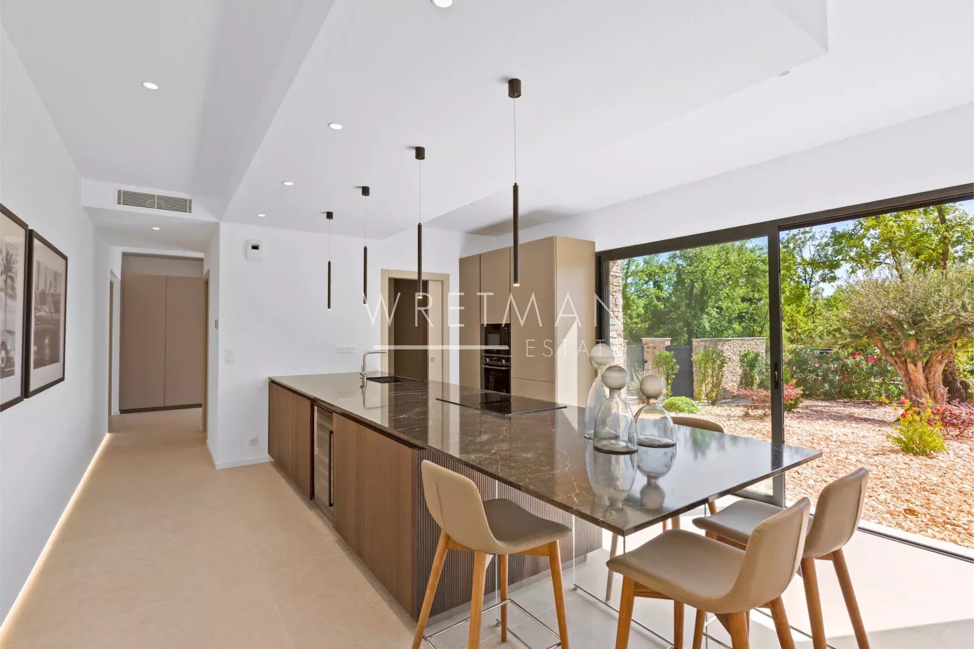 La villa contemporaine “Augusta” est une magnifique propriété récemment achevée et vendue meublée. Elle offre 240 m² de pur confort. Répartie sur deux niveaux, elle propose une entrée baignée de lumière, un vaste séjour avec cheminée, une cuisine ouverte entièrement équipée, ainsi qu’une suite parentale avec salle de bains et dressing au rez-de-chaussée. À l’étage, trois chambres disposent chacune de leur propre salle d’eau.