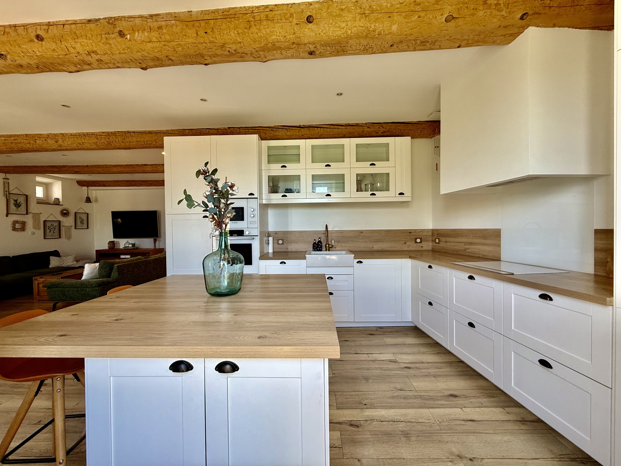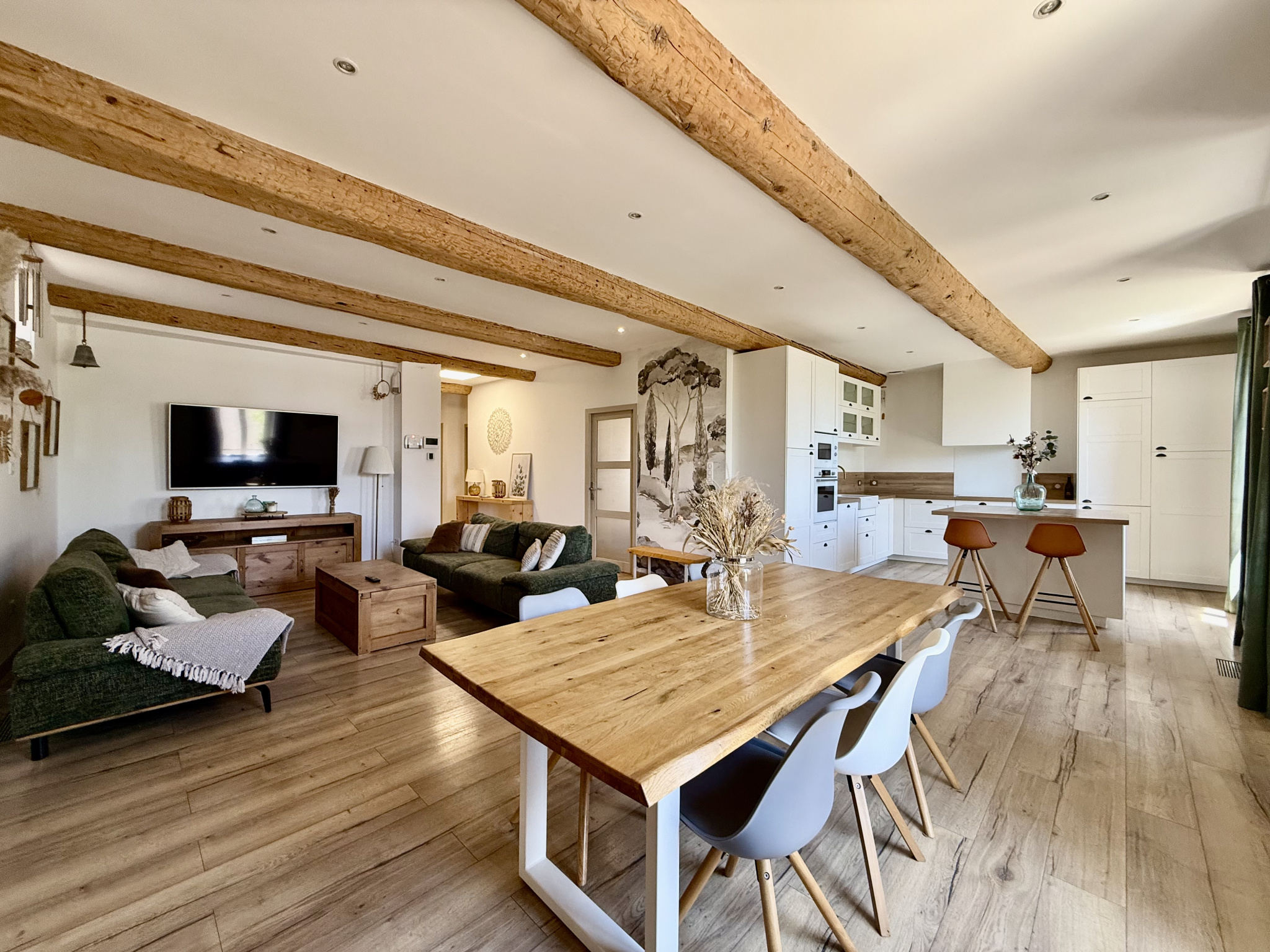 La maison a bénéficié d'une rénovation complète et de qualité. Les sols, l'isolation, l'électricité, la plomberie, les cloisons et la cuisine ont été entièrement repris avec des matériaux modernes. Ce chantier a été mené dans le respect de l'âme de la bâtisse, en conservant volontairement certains éléments d'époque, comme les poutres apparentes, qui apportent une touche d'authenticité et de charme. Le résultat est un équilibre réussi entre esthétique traditionnelle et prestations contemporaines, offrant le confort d'un bien rénové avec le caractère de l'ancien.