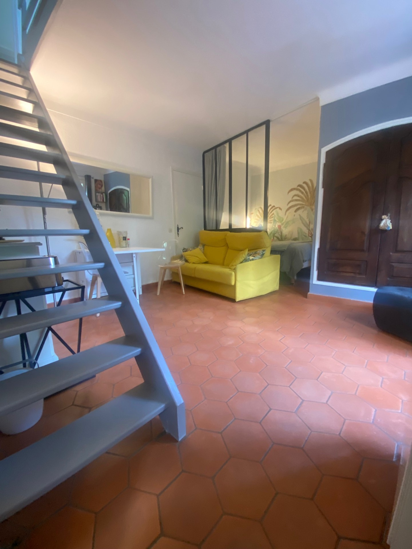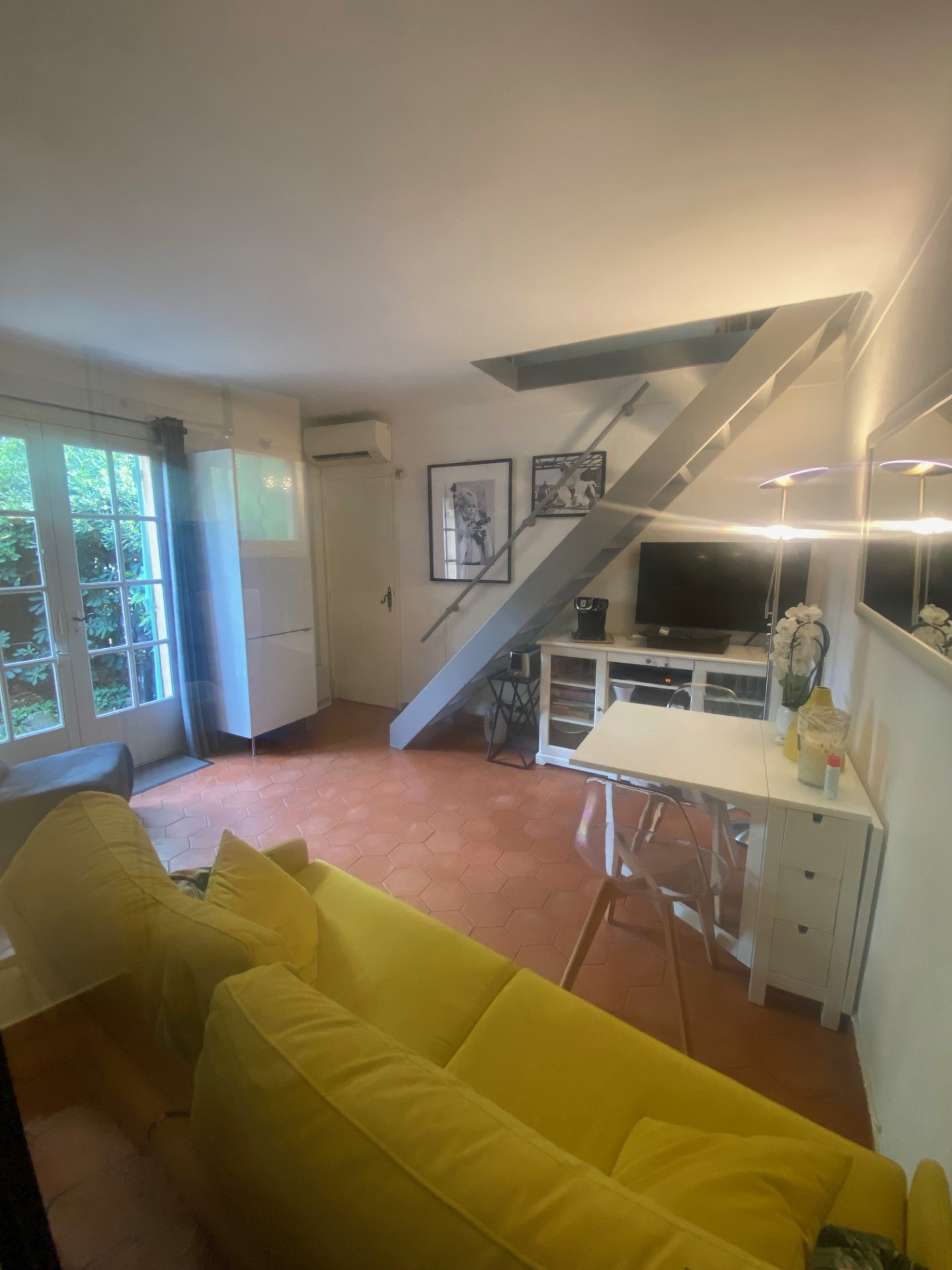 EXCEPTIONNEL : Emplacement idéal à deux pas de la Plage, Charmant appartement en rez de jardin, avec mezzanine comprenant :- Au rez de jardin : une salle de séjour ouvrant sur une belle terrasse privative de 12 m2 environ, un espace nuit, 1 kitchenette équipée, 1 salle d'eau avec wc.- A l'étage , une mezzanine équipée d'un velux, : une chambre, penderie, 1 douche et un wc, un grenier pour stockage.- Le bien bâti représentant une surface habitable de 26,54m2, plus 10 m2 environ hors carrez.( partie de la mezzanine).- Grenier de 4,60 m2. Dans une copropriété joliment arborée et au calme.Climatisation en rez de jardin et à l'étage.- Fibre Internet- Parking extérieur possible dans la copropriété.