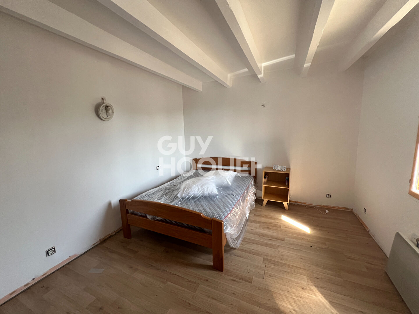 Au rez-de-chaussée un salon-séjour, une cuisine ouverte, une salle de bains, un toilette et deux chambres. A l'étage, deux chambres, un grand palier et 30m² restant à rénover. Le tout sur 715 m² de terrain clos.